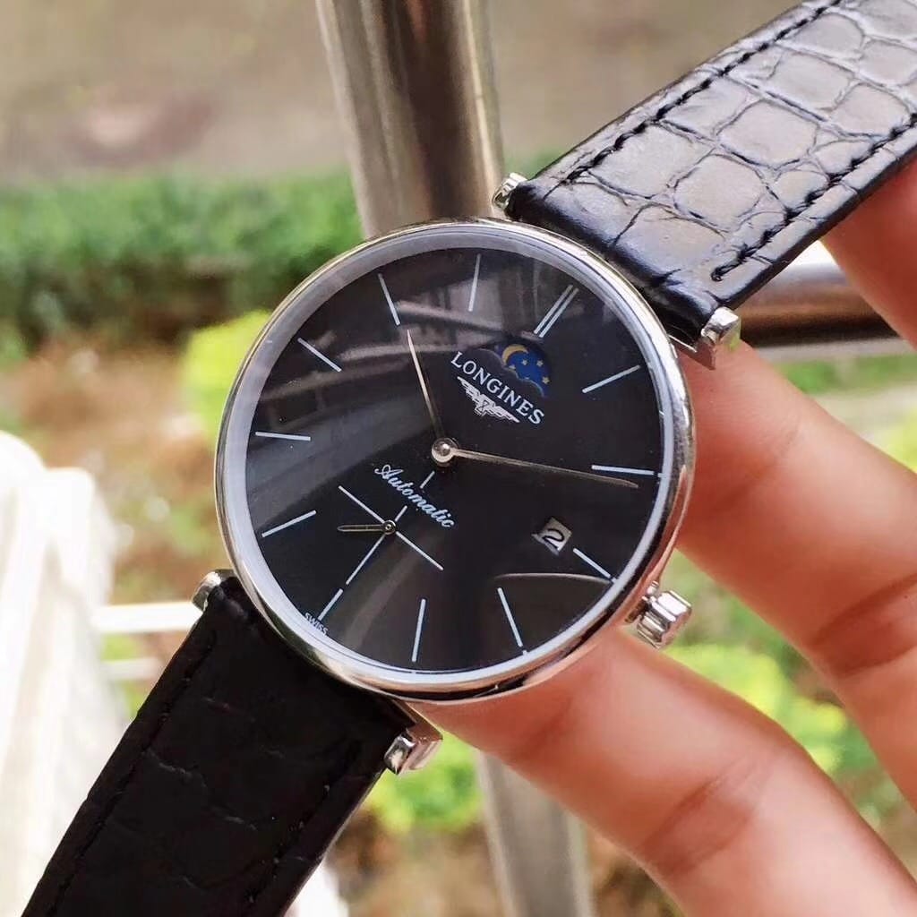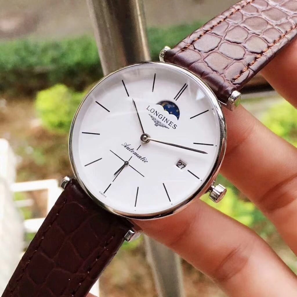 品牌:浪琴-LONGINES精品男士腕表,嘉岚系列,简约两针半小秒盘搭配12字位日月星辰设计,全自动机械机芯,尺寸:36mm厚10mm,顶级进口牛皮表带,装配原装针扣A级水晶镜面