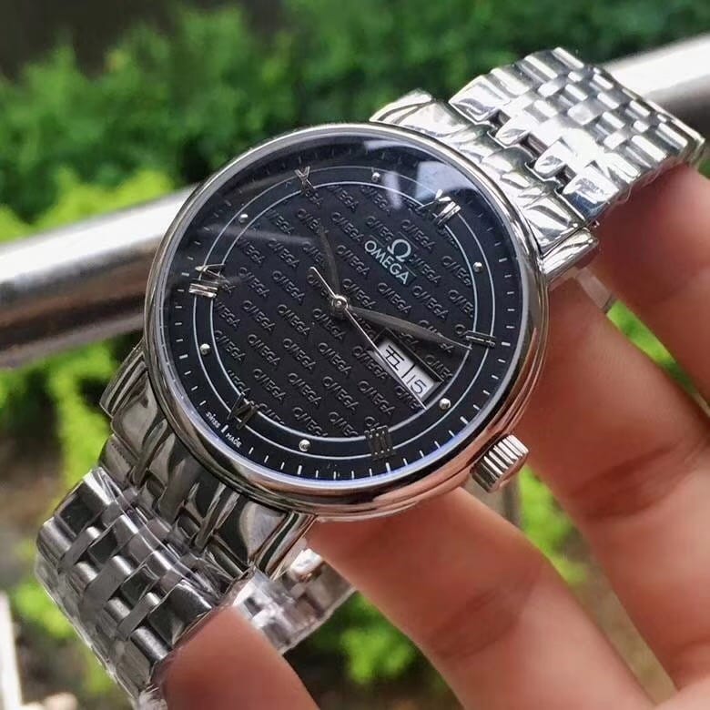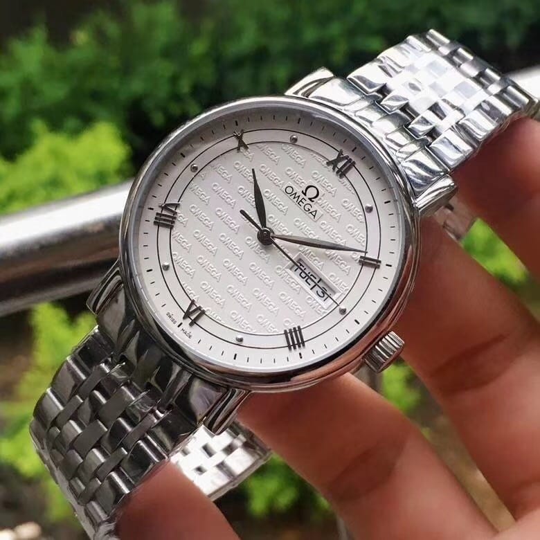 欧米茄顶级316精钢钢带男士腕表 简约三针搭配3字位双日历设计