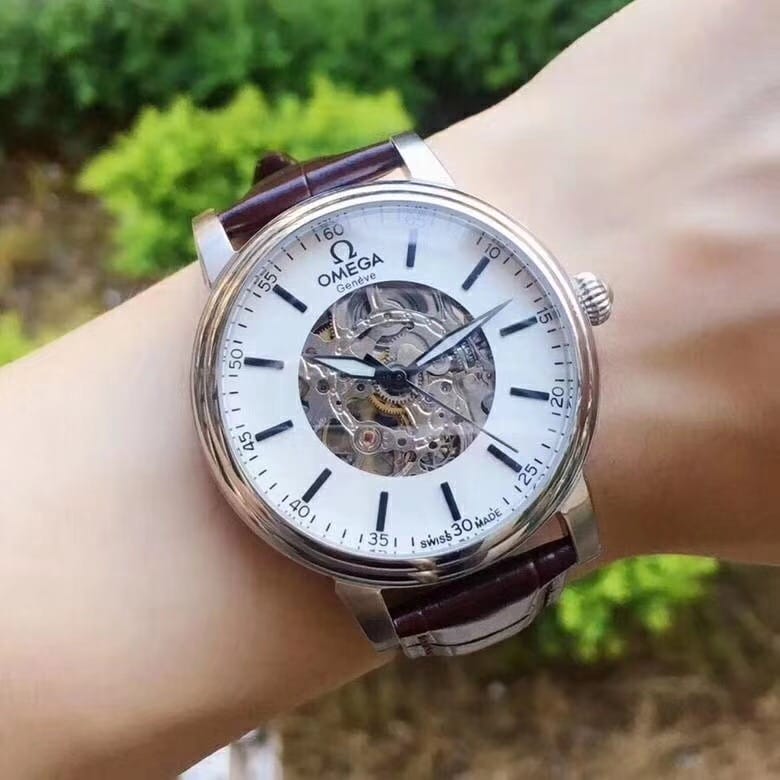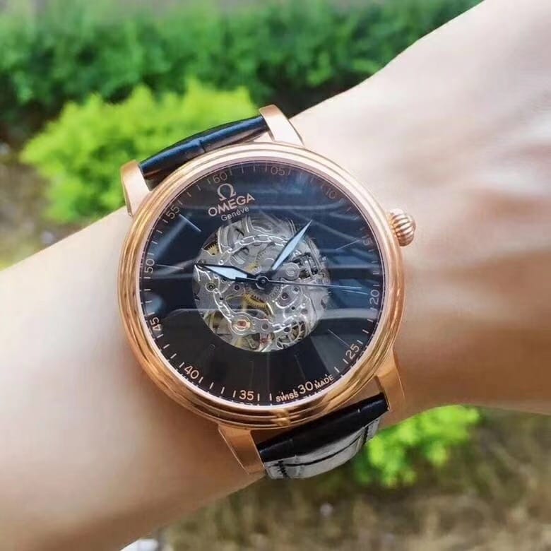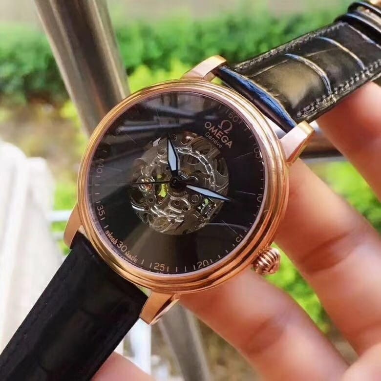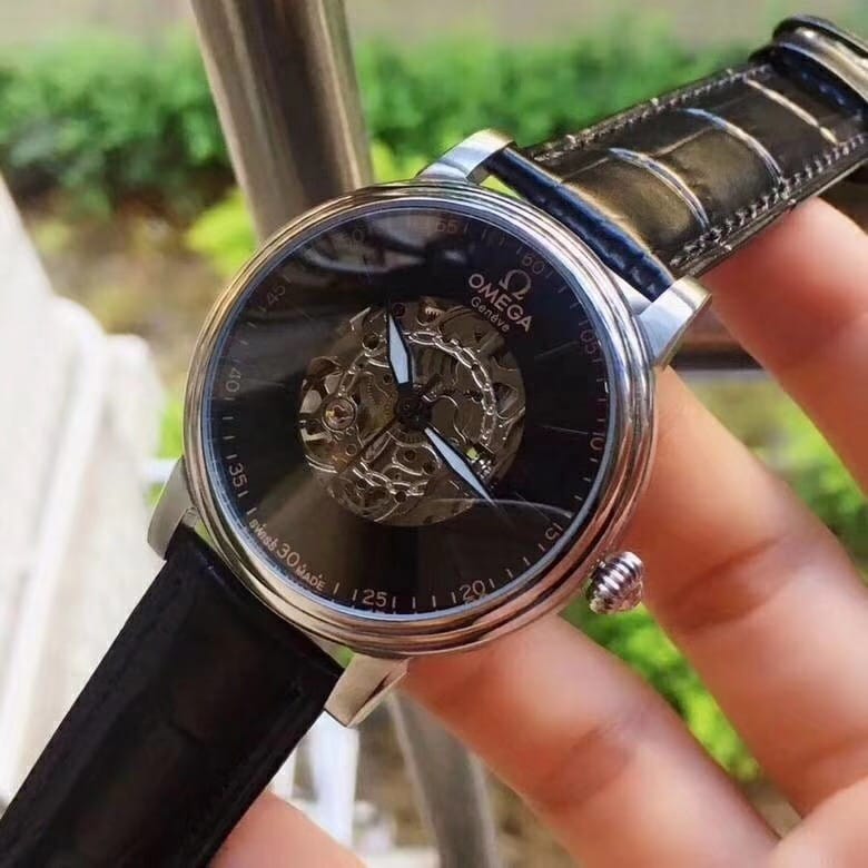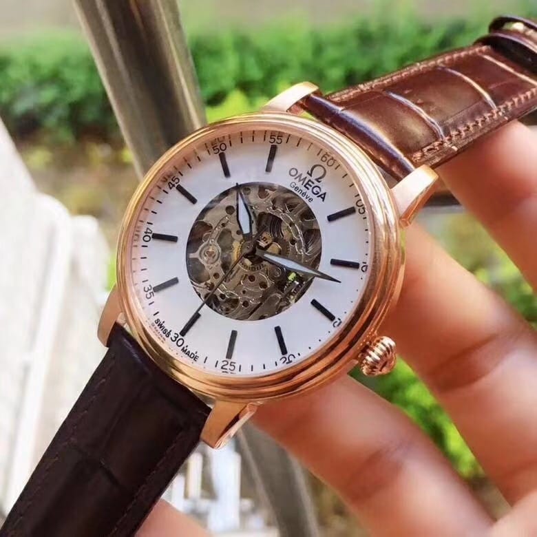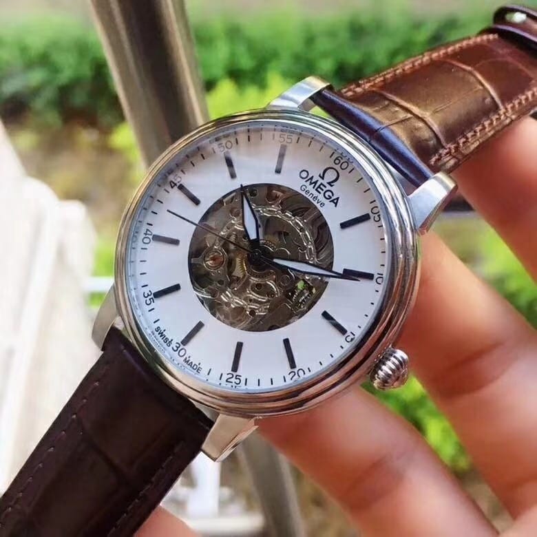 欧米茄精品男士腕表 简约三针搭配镂空设计 顶级进口牛皮表带