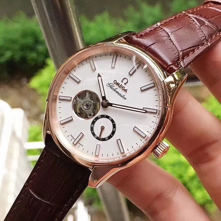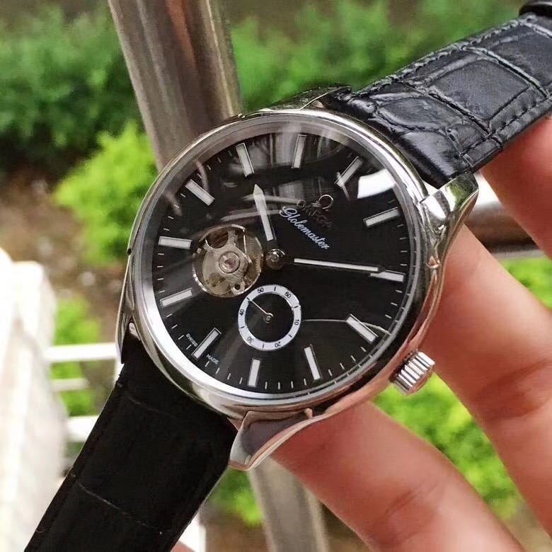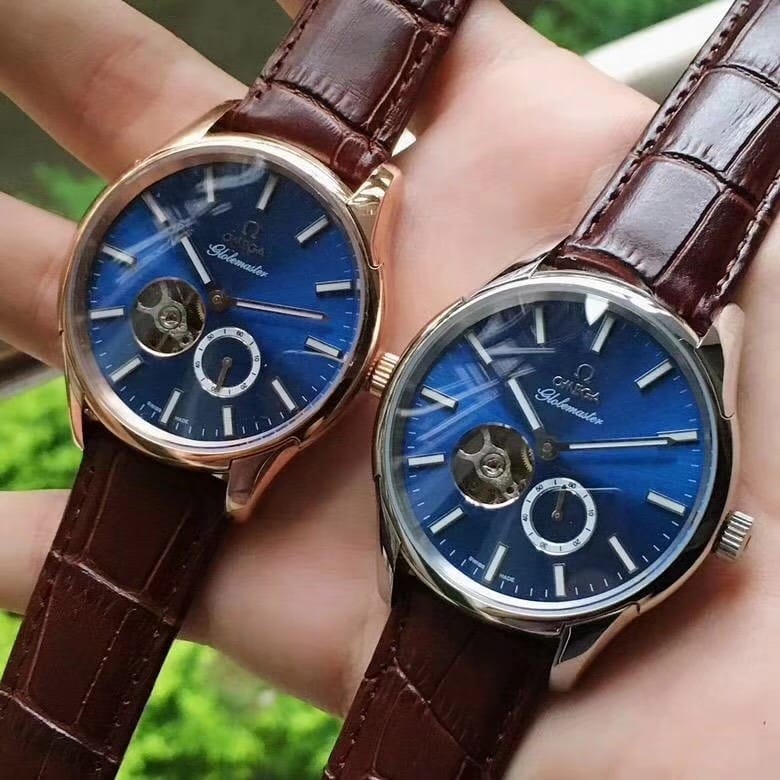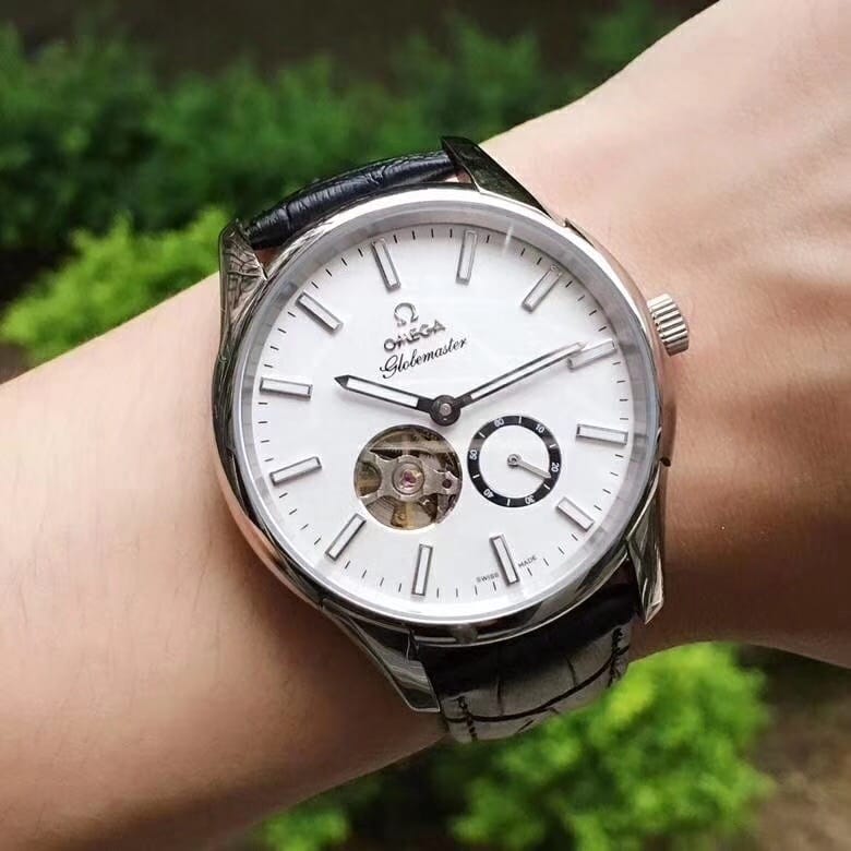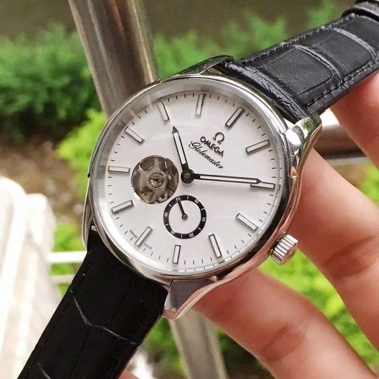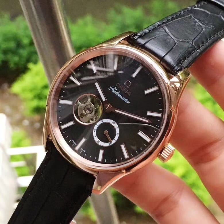欧米茄精品男士腕表 简约三针搭配镂空设计 顶级进口牛皮表带