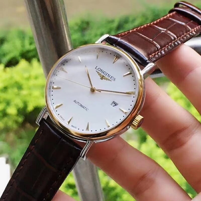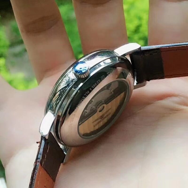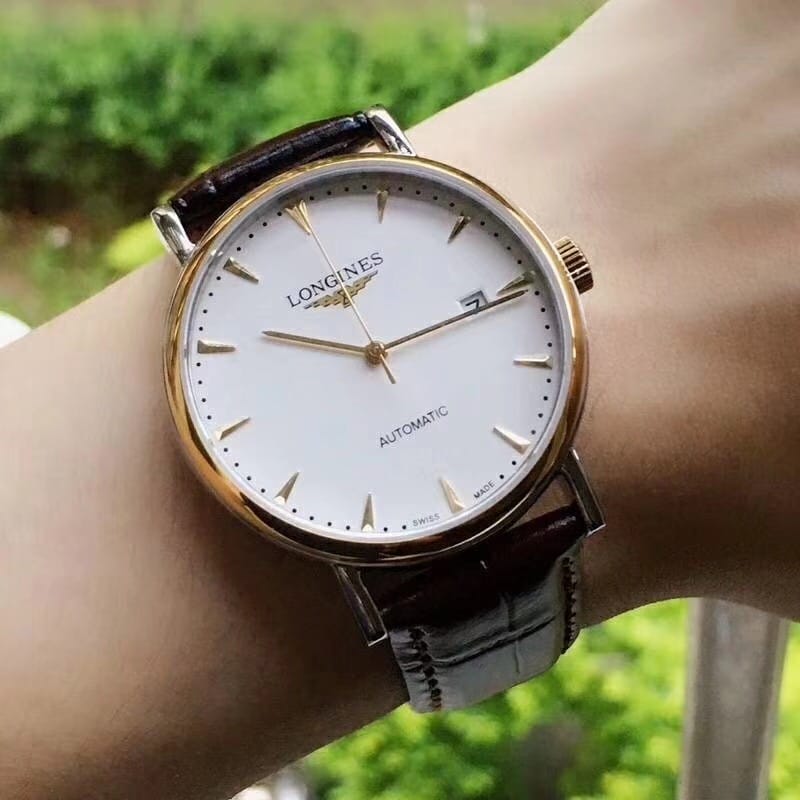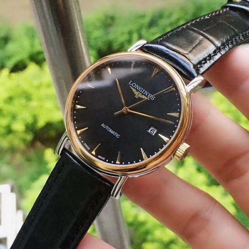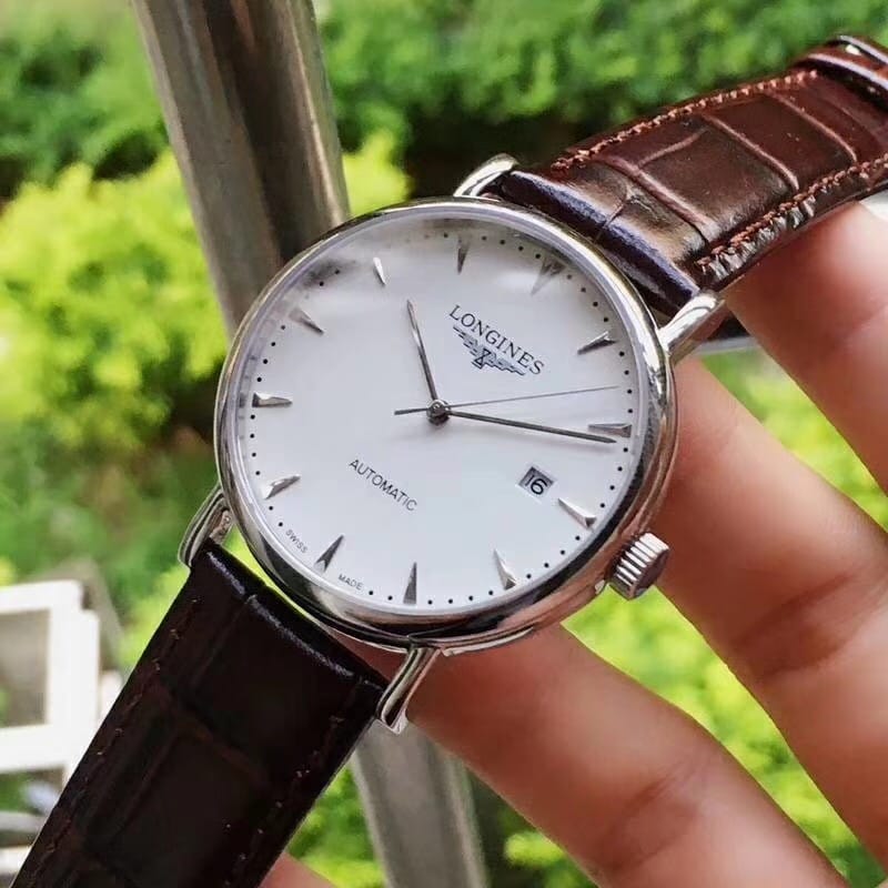 品牌:浪琴-LONGINES精品男士腕表,简约三针搭配3字位单日历设计,316精钢表壳,全自动机械机芯,尺寸:40mm厚12mm,顶级进口牛皮表带,装配原装表扣A级水晶镜面