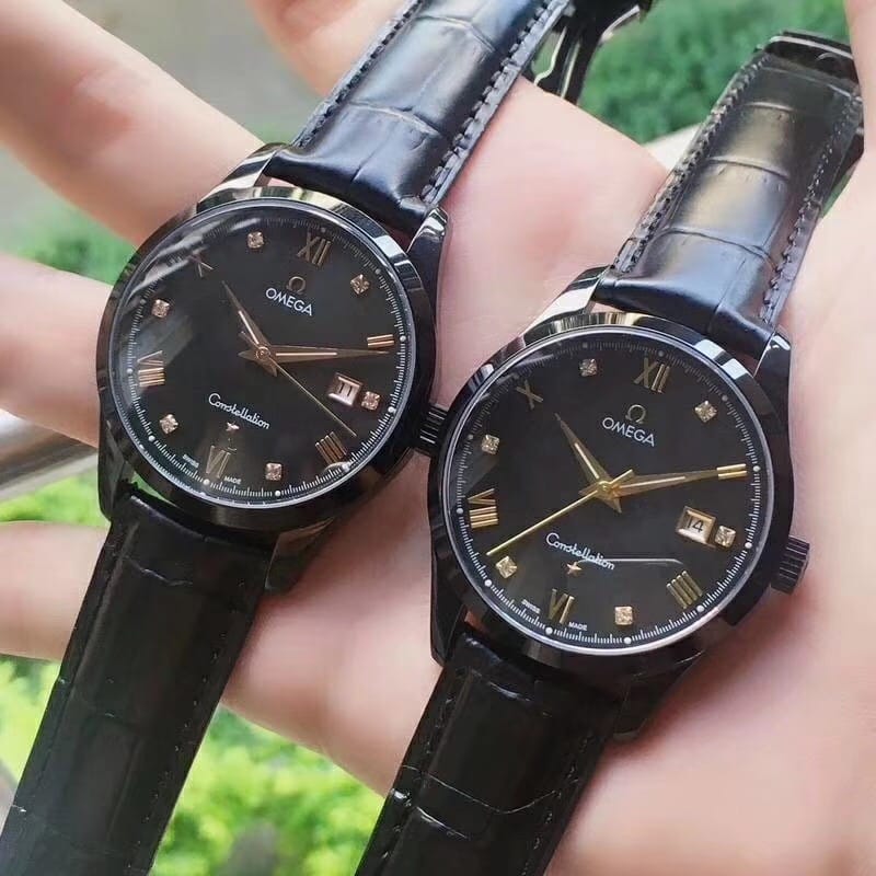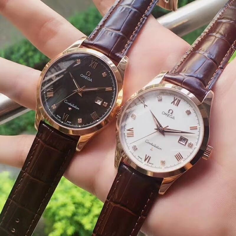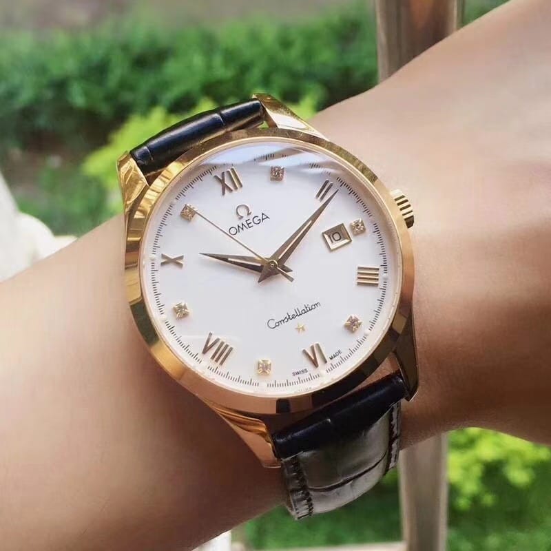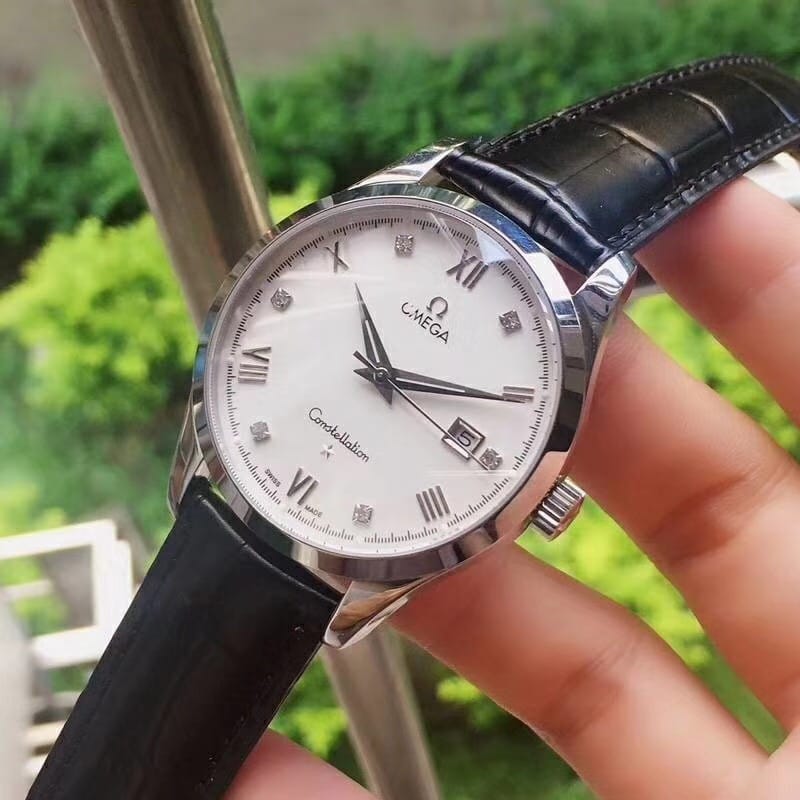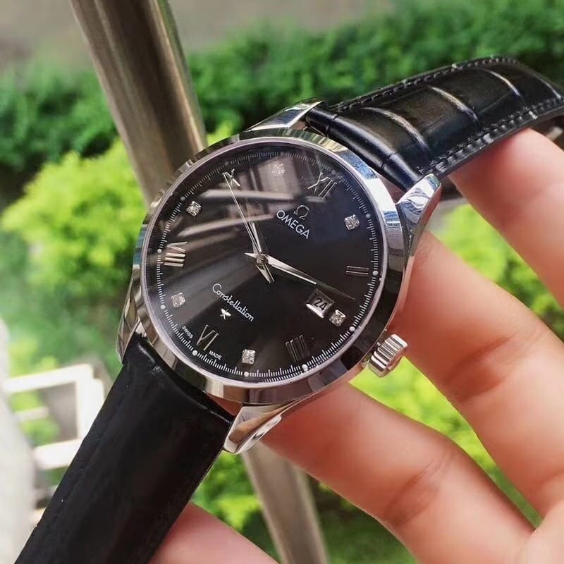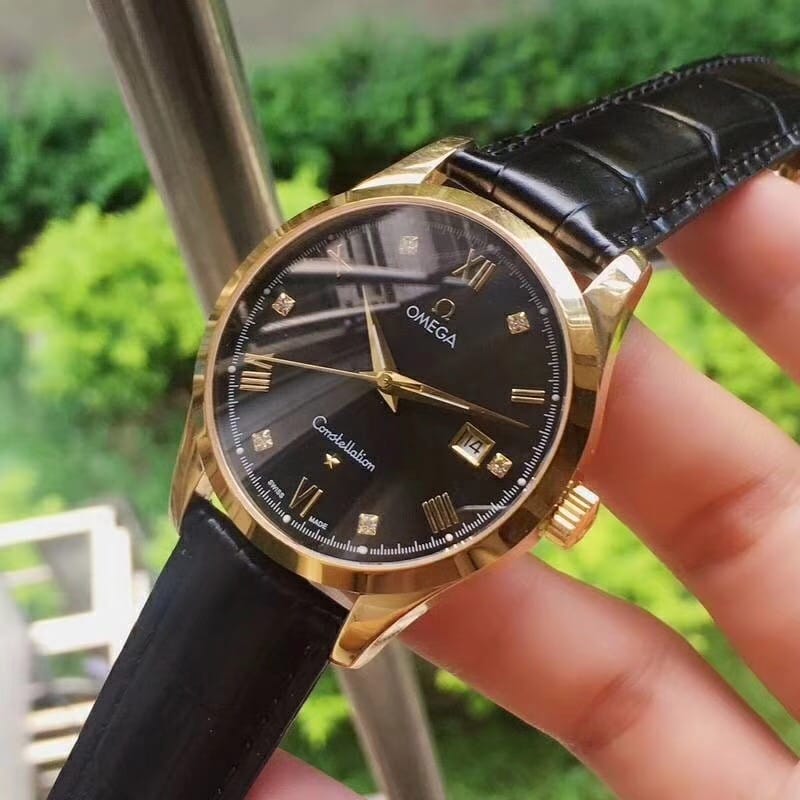 欧米茄精品男士腕表 简约三针搭配3字位单日历设计 顶级进口牛皮表带
