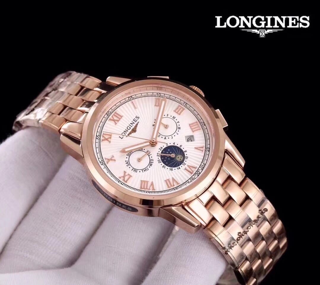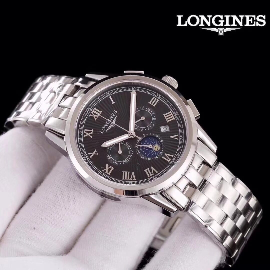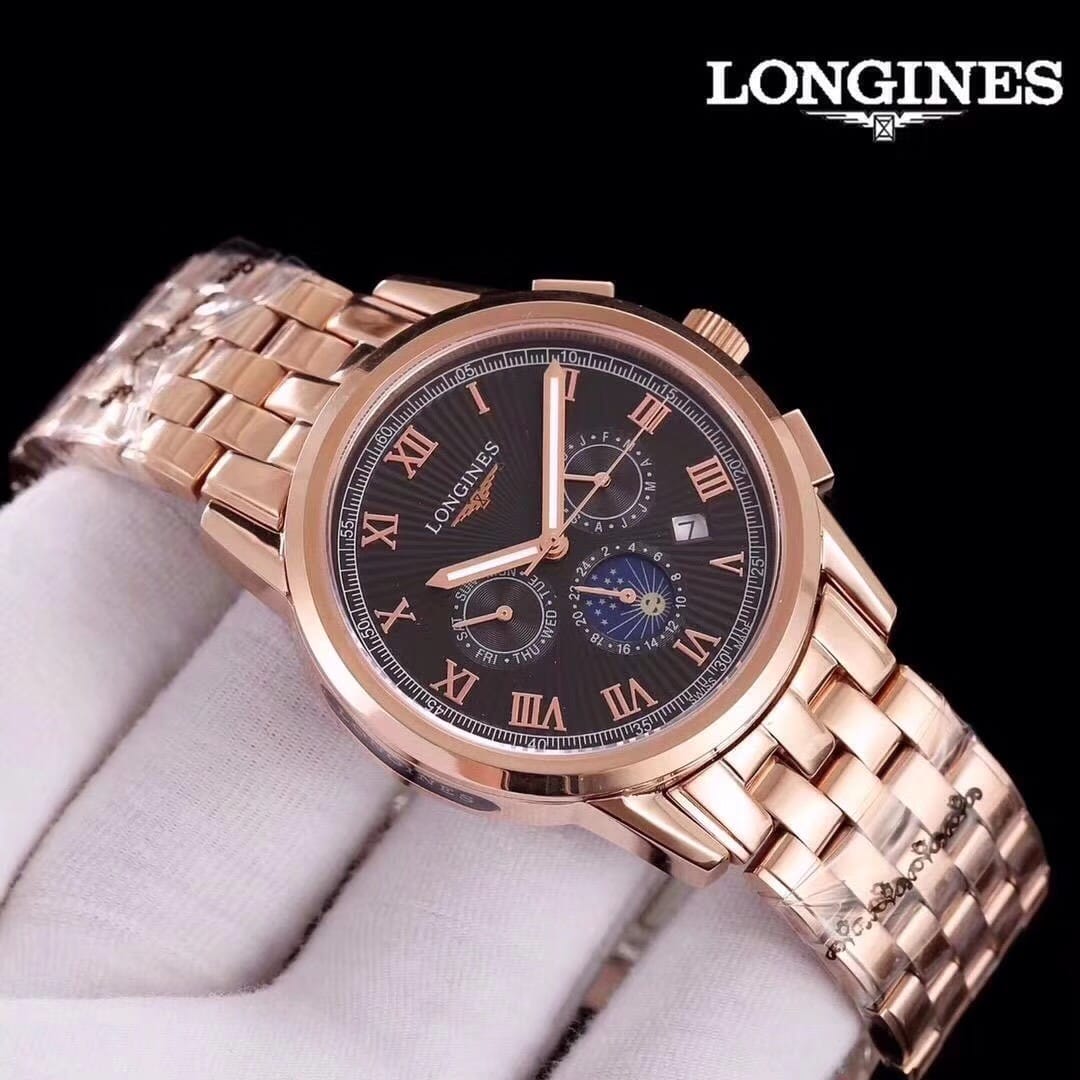 浪琴(LONGINES)优雅男士多功能腕表 日月星辰 星期 月份 日历显示 全自动机械机芯 走时精准稳定 316精钢表壳,矿物质水晶镜面 进口小牛皮皮带搭配浪琴原装蝴蝶扣 直径40mm厚12mm