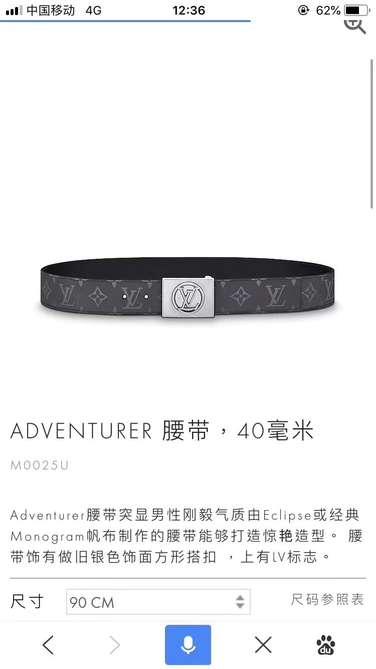 Lv男士新款皮带腰带 3.5cm宽度 全套包装