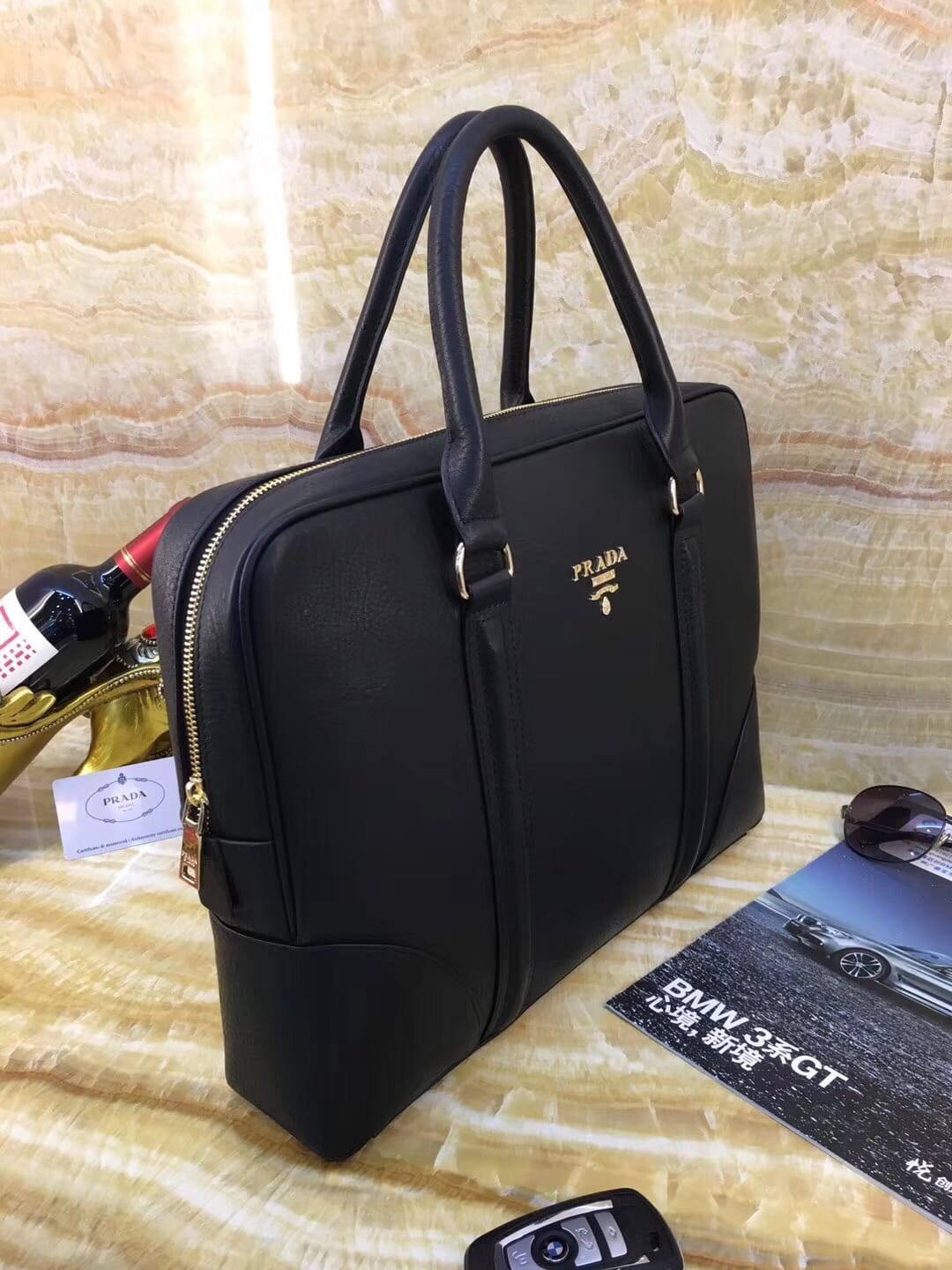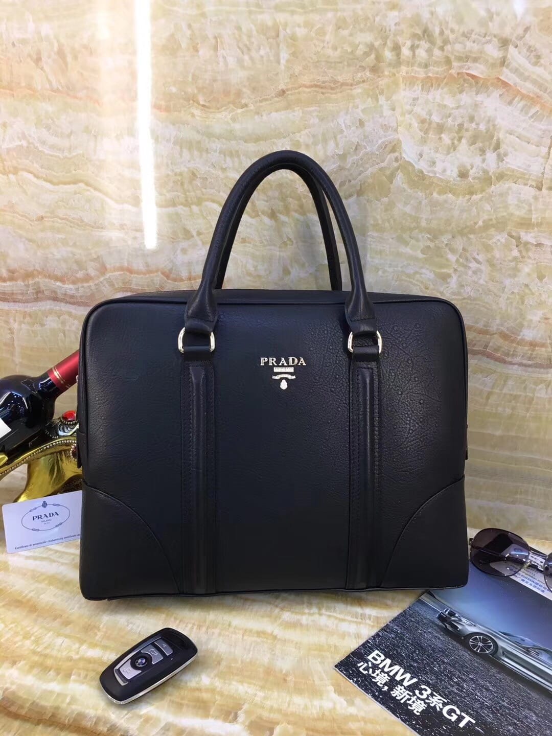 最新2018?推出 奢華 ?【普拉达】男包?精選皮料中的鉑