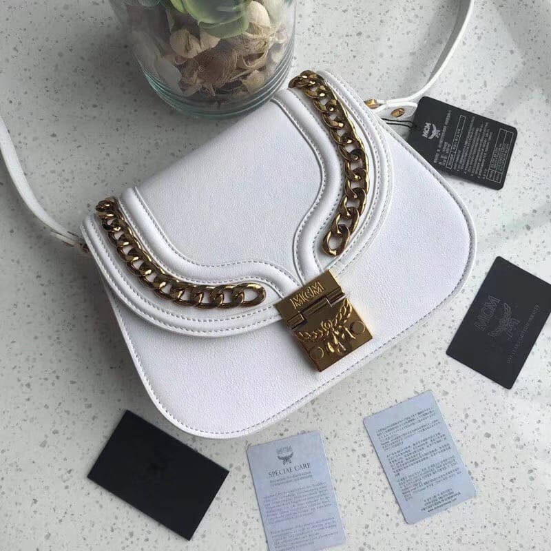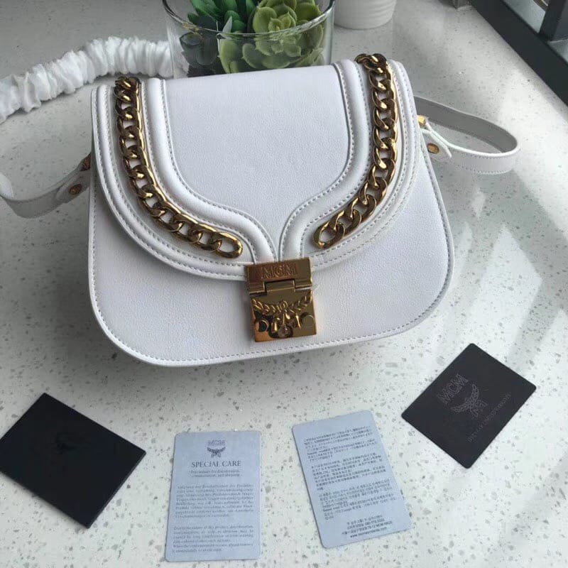 新款来袭??MCM2018新款顶级荔枝皮配金属链条??[玫瑰