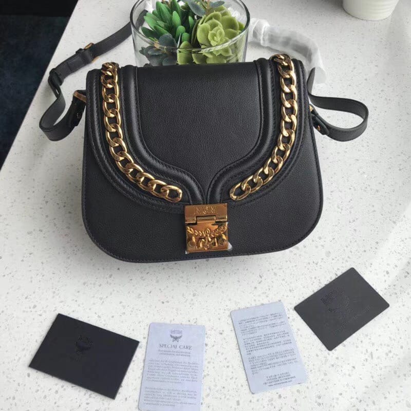新款来袭??MCM2018新款顶级荔枝皮配金属链条??[玫瑰