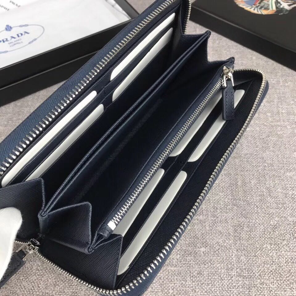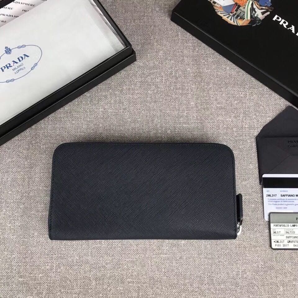 【原单代购级】PRADA爆款男士单拉链钱包?官网同步,正品开发,颜色:黑色/压字唛,内码164代工码? 意大利顶级原单十字纹牛皮质感极好,进口螺纹里布 进口白钢五金配件!精湛走线均匀整齐 做工精湛 品质媲美正品,尺寸:长20cm高10.3cm【配原单包装盒身份证卡片编号可扫码】