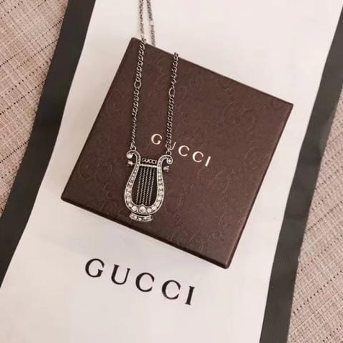 Gucci 七弦琴风琴镶钻项链 专柜一致黄铜材质搭配水晶钻