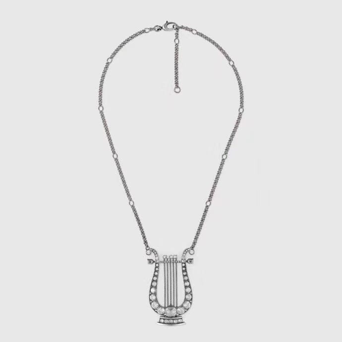 Gucci 七弦琴风琴镶钻项链 专柜一致黄铜材质搭配水晶钻