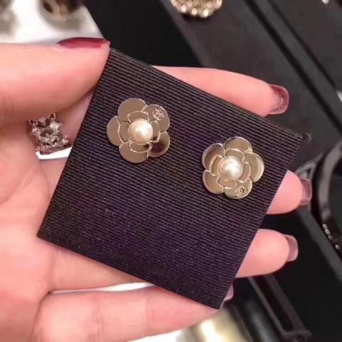 Chanel 专柜2018新款 花朵爱心黄铜耳钉 专柜一致黄