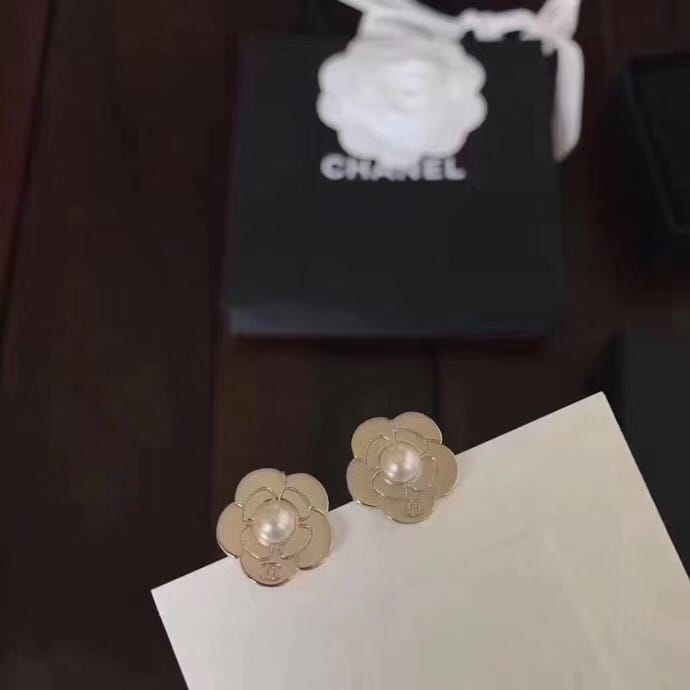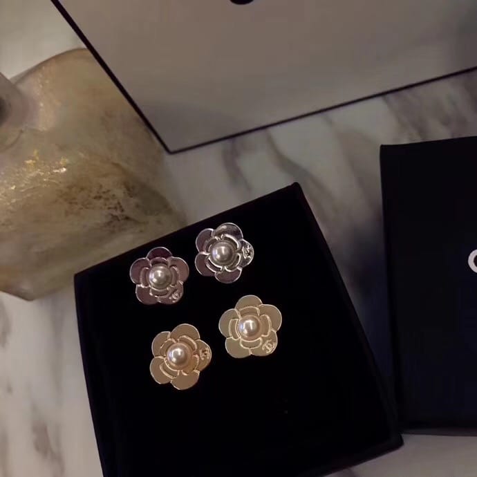 Chanel 专柜2018新款 花朵爱心黄铜耳钉 专柜一致黄