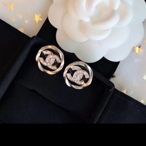 ?Chanel 小香 圆圈扭纹双C镂空耳钉 专柜一致黄铜材质