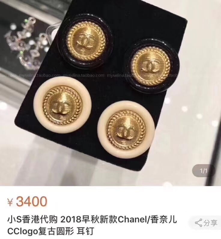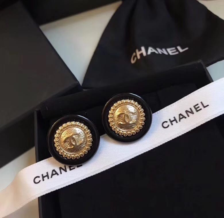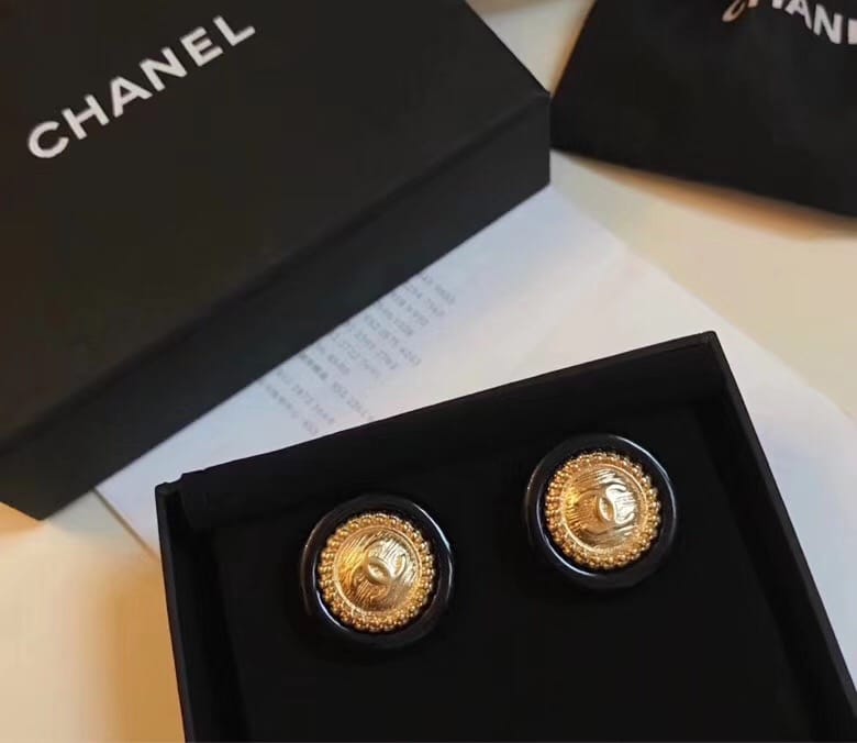 ?ZP同步 小香 ? 原版镀18K金小香黑 纽扣耳钉 原版