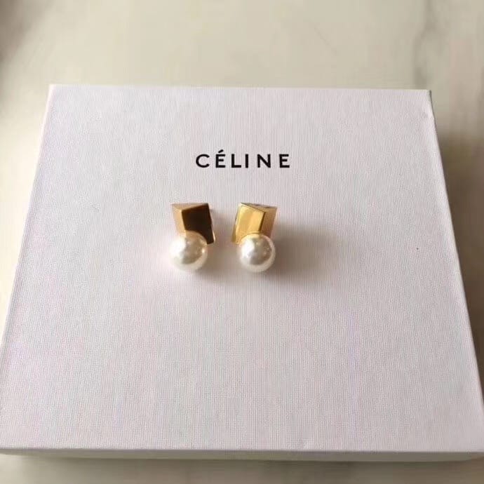 ?喜哥 女神同款 Celine 金属 珍珠简约 耳钉;已经