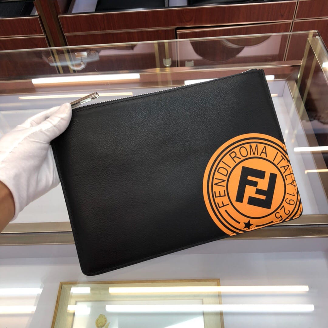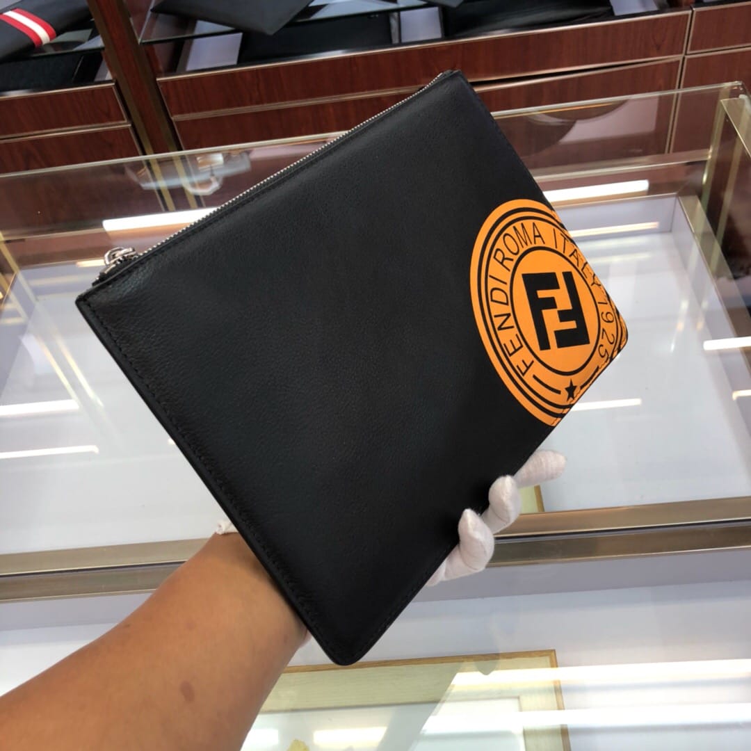 原官网262黄色丝印唛头信封包设计利落的拉链手拿包。灰色罗马