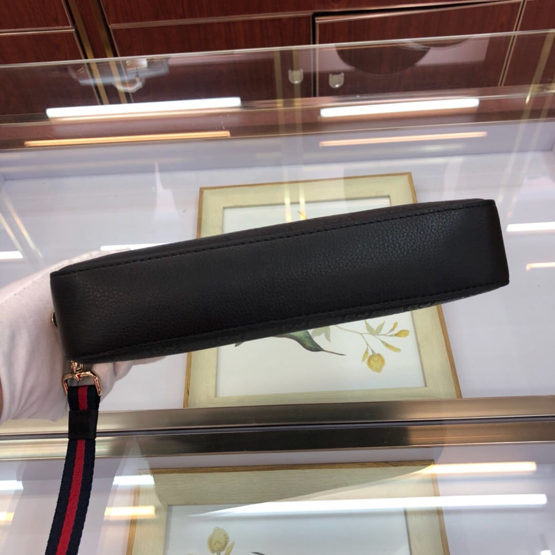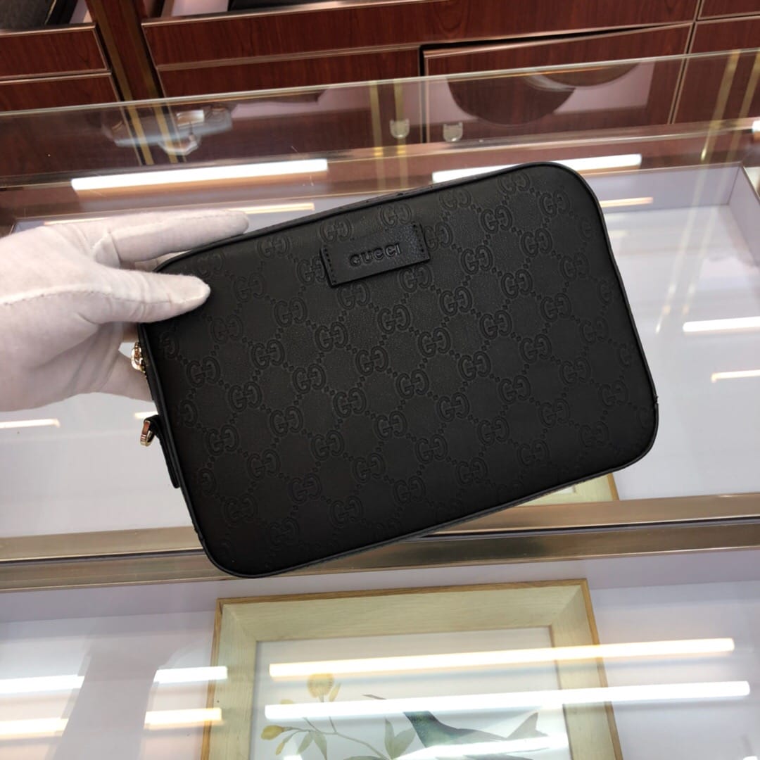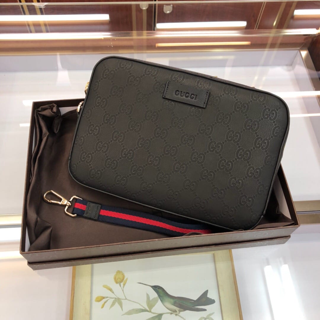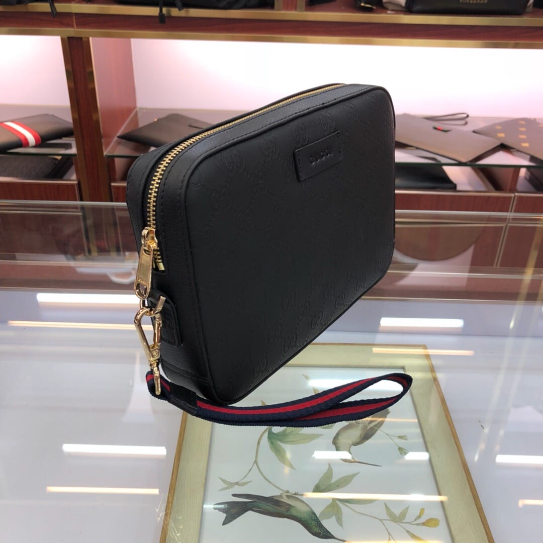 原单网6709手拿包GG图案花牛皮配有可拆卸肩手包,使用Gucci Signafure高级人造帆布制作,黑色和灰色组合,除了GG图案外,还在中心位置加入一条兰红织带,这是Gucci经典热压皮革的新版本,结构更具延展性,(意大利创作)尺寸:23.5*4.5*15.5cm