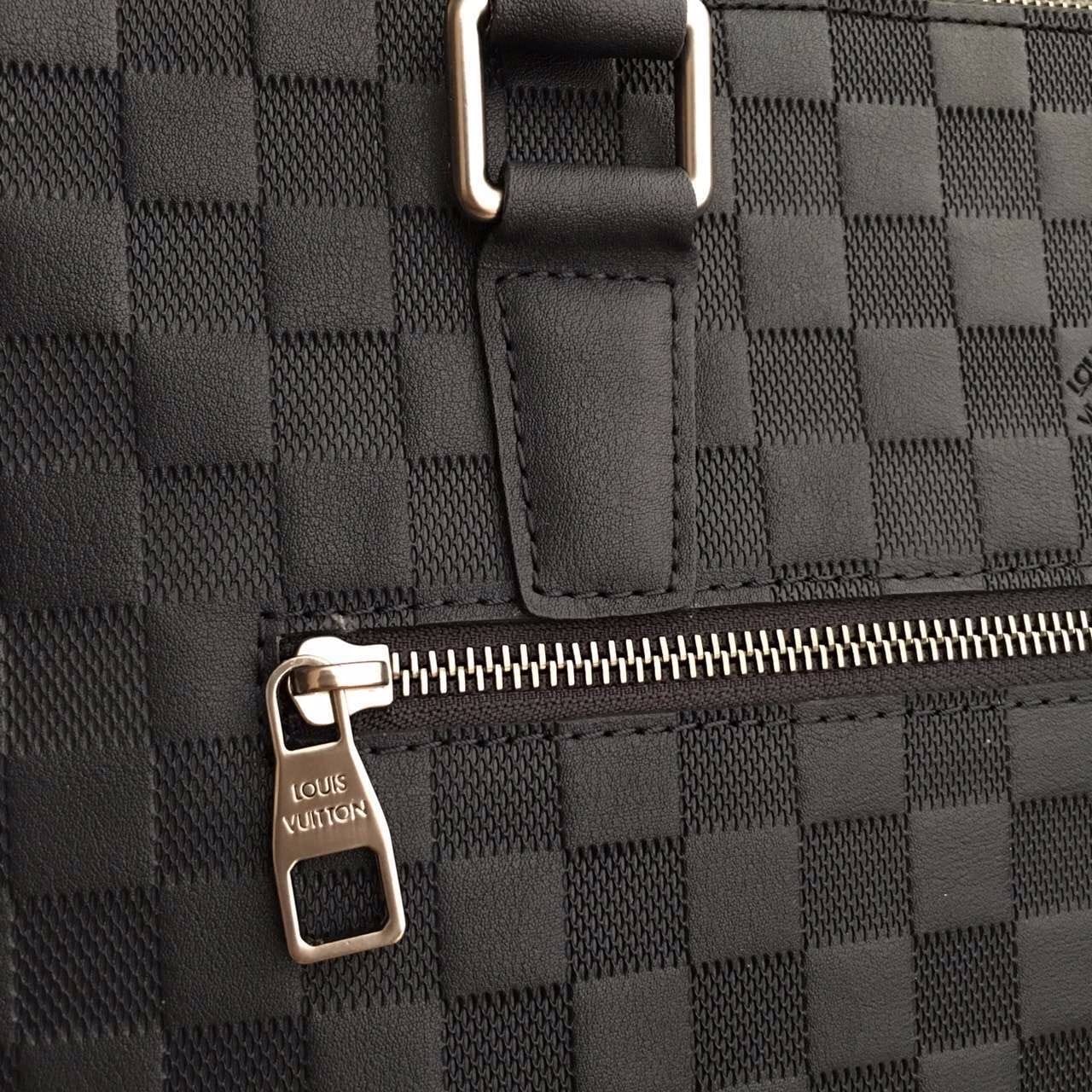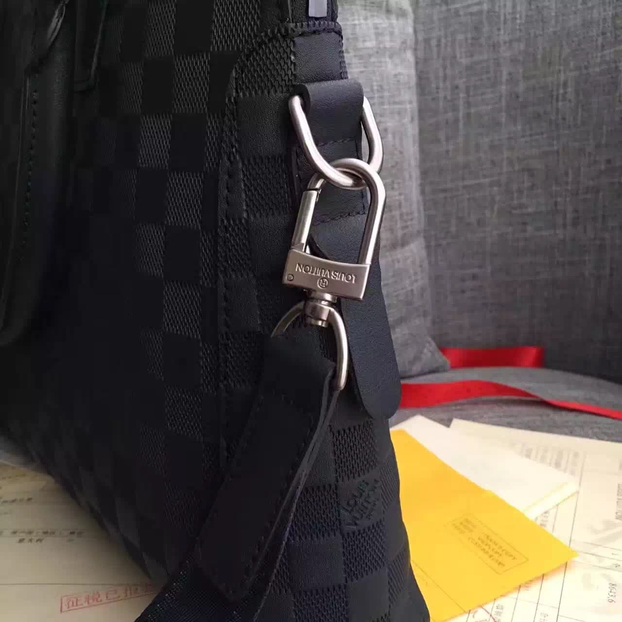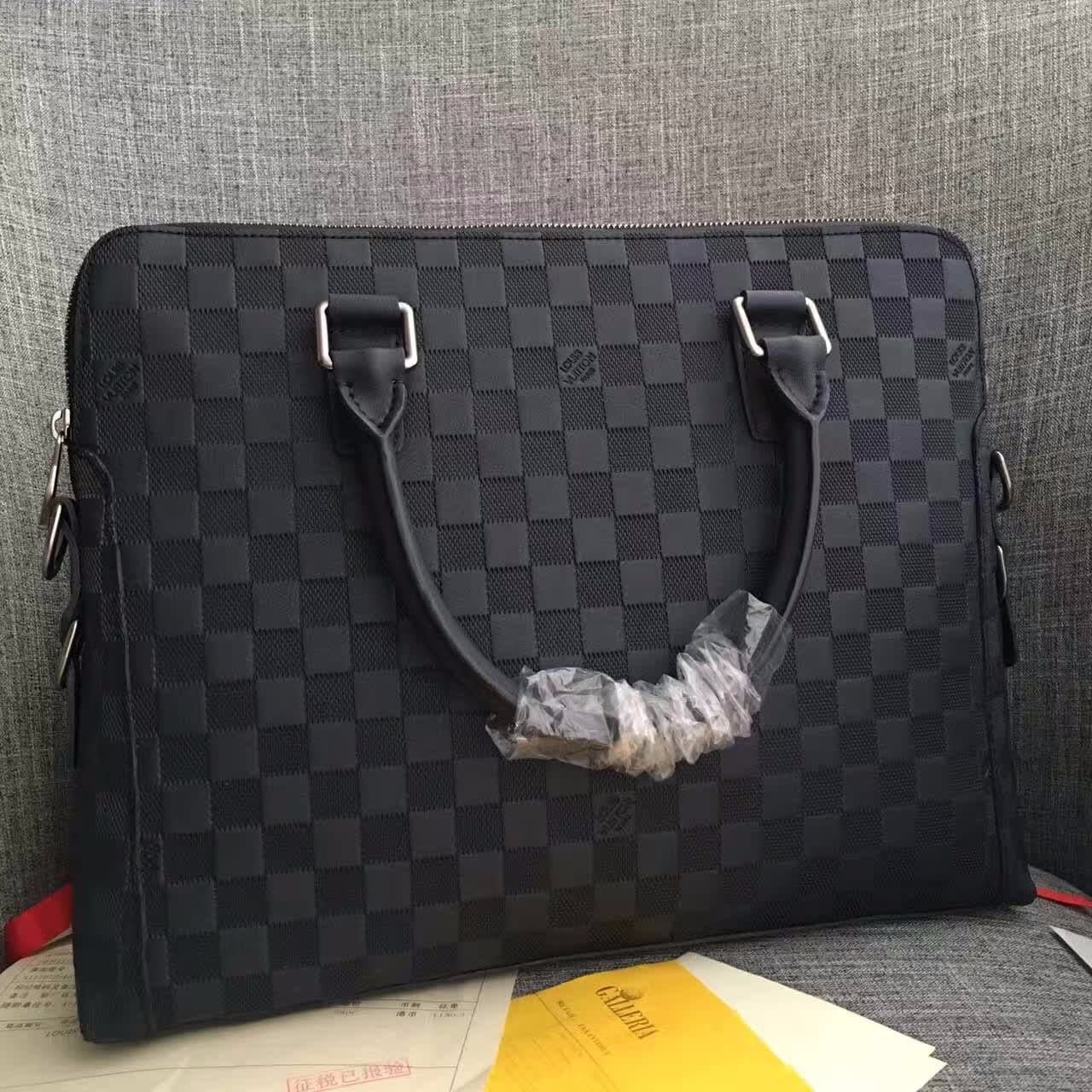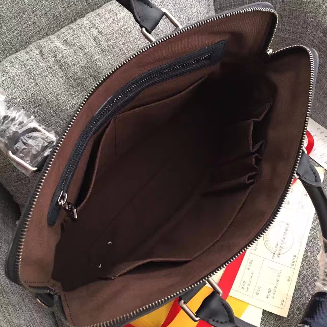 独家实拍!N41151兰色压格公文包,贵族气质,规格37×28×7cm,材质:小牛皮压格,皮色泽很哑,原版边油,冰川灰内里,肩带标准的4cm(正品开磨),内设序列号,此款绝对独家,从选材到5金都对版复刻.跟足原版分格,做工精细,专柜无差异!