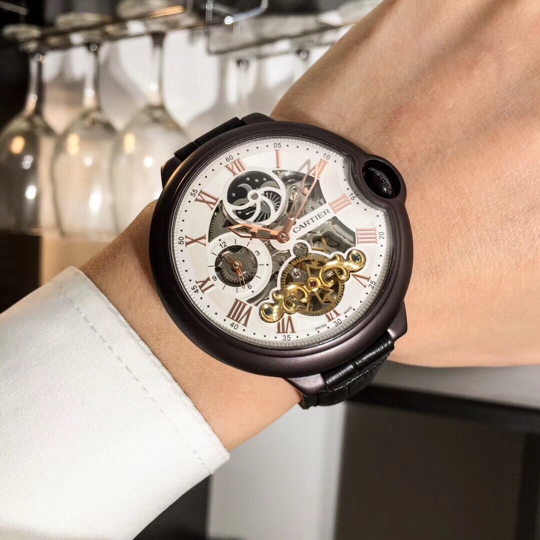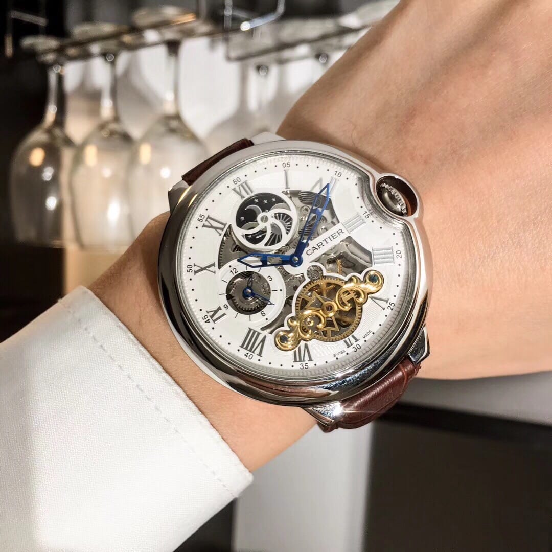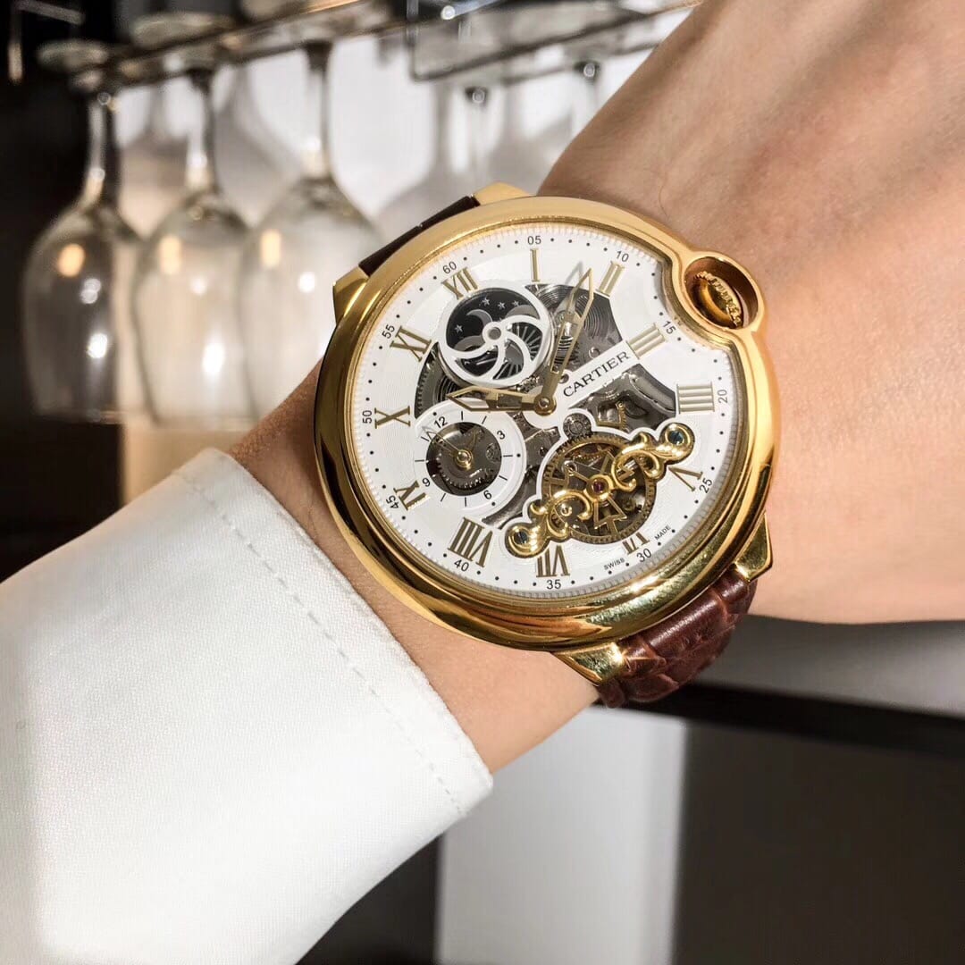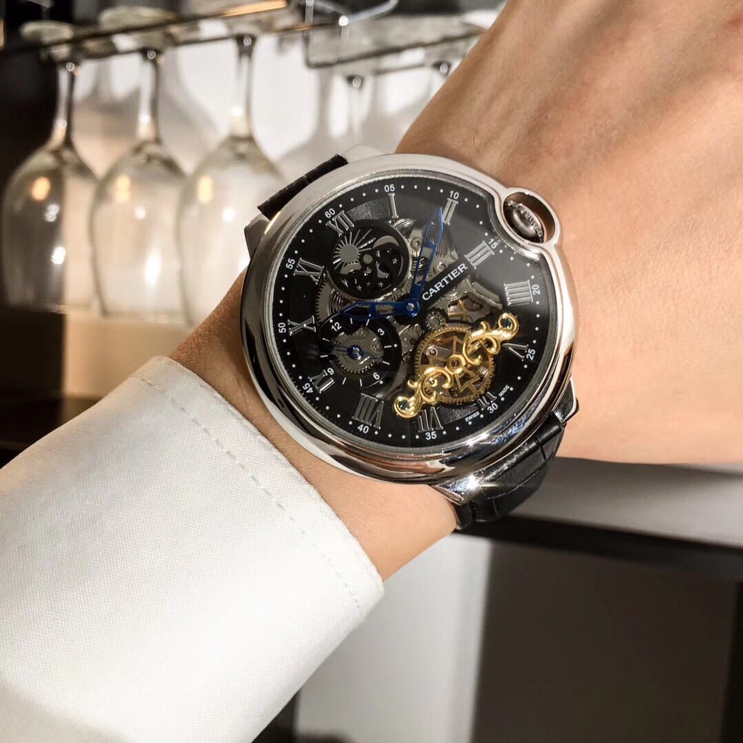 卡地亚-CARTIER??蓝气球陀飞轮?全新推荐?独特经典构造??内置顶级全自动机械机芯 拱型蓝光玻璃镜面 3D雕刻纹路字面 进口牛皮表带?顶级出品精品不断?