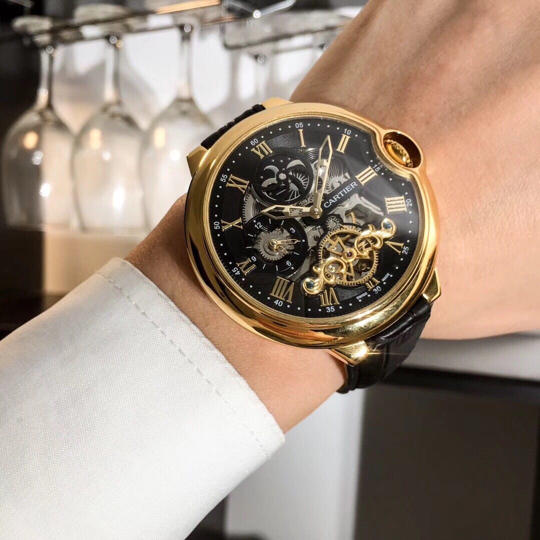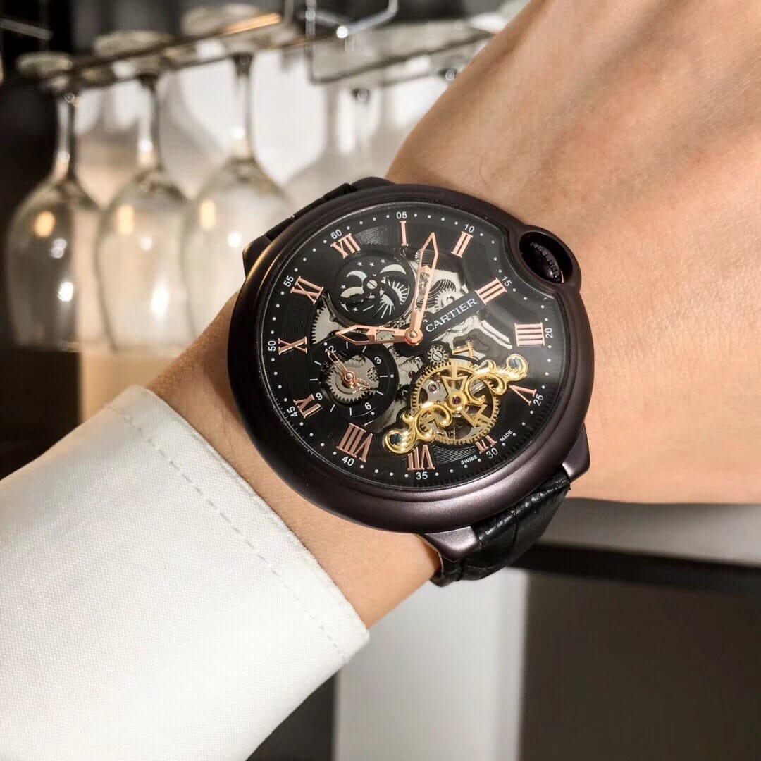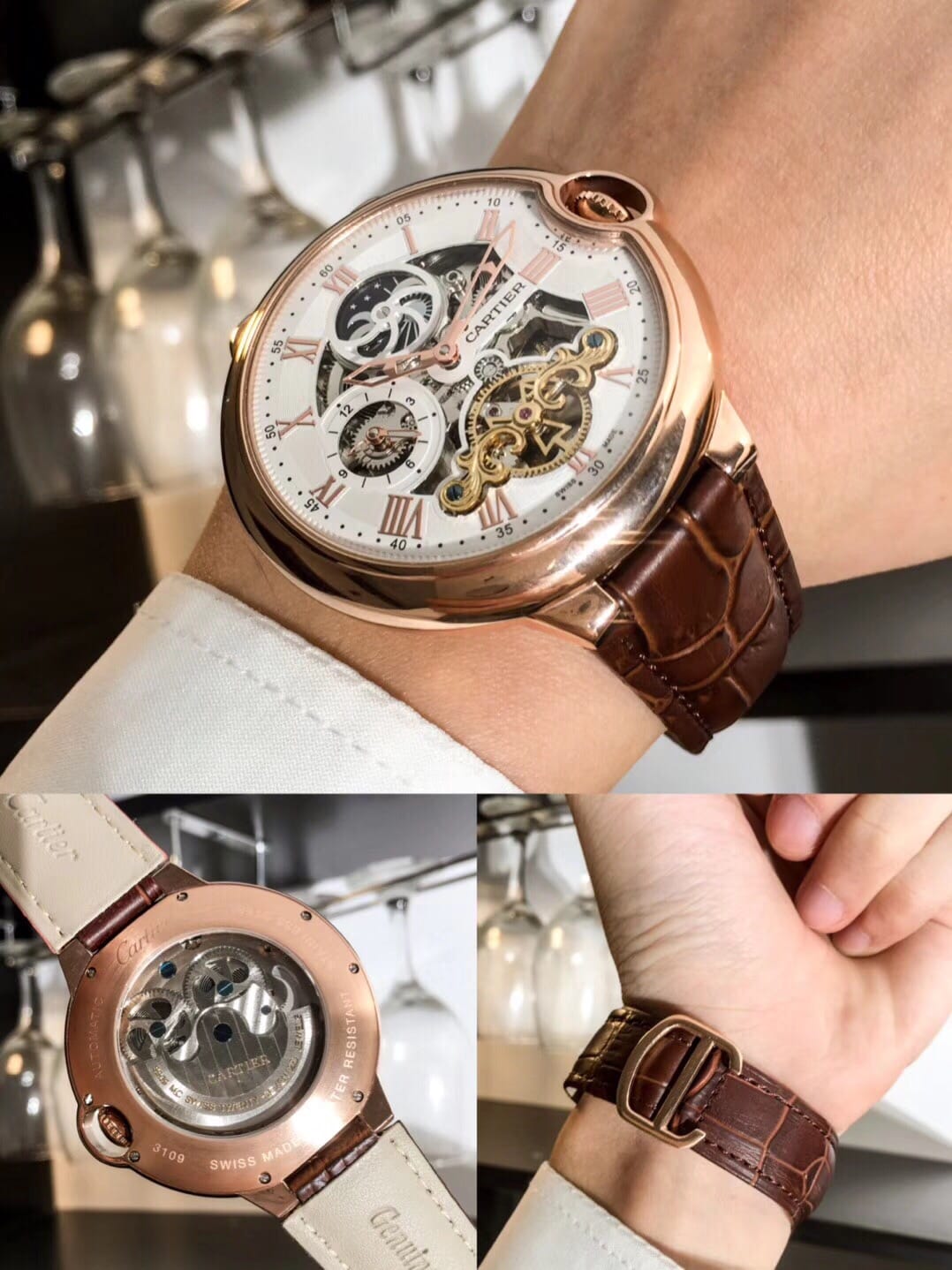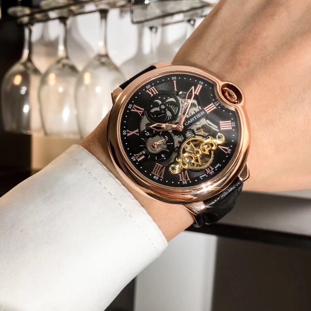 卡地亚-CARTIER??蓝气球陀飞轮?全新推荐?独特经典构造??内置顶级全自动机械机芯 拱型蓝光玻璃镜面 3D雕刻纹路字面 进口牛皮表带?顶级出品精品不断?