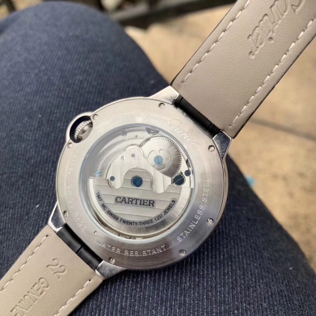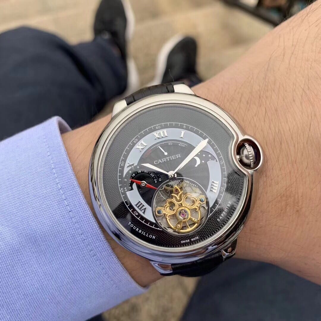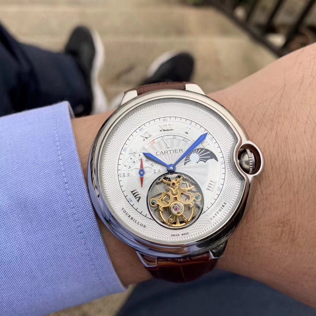 卡地亚-CARTIER??蓝气球陀飞轮?全新推荐?独特经典构造??内置顶级全自动机械机芯 拱型蓝光玻璃镜面 3D雕刻纹路字面 进口牛皮表带?顶级出品精品不断?