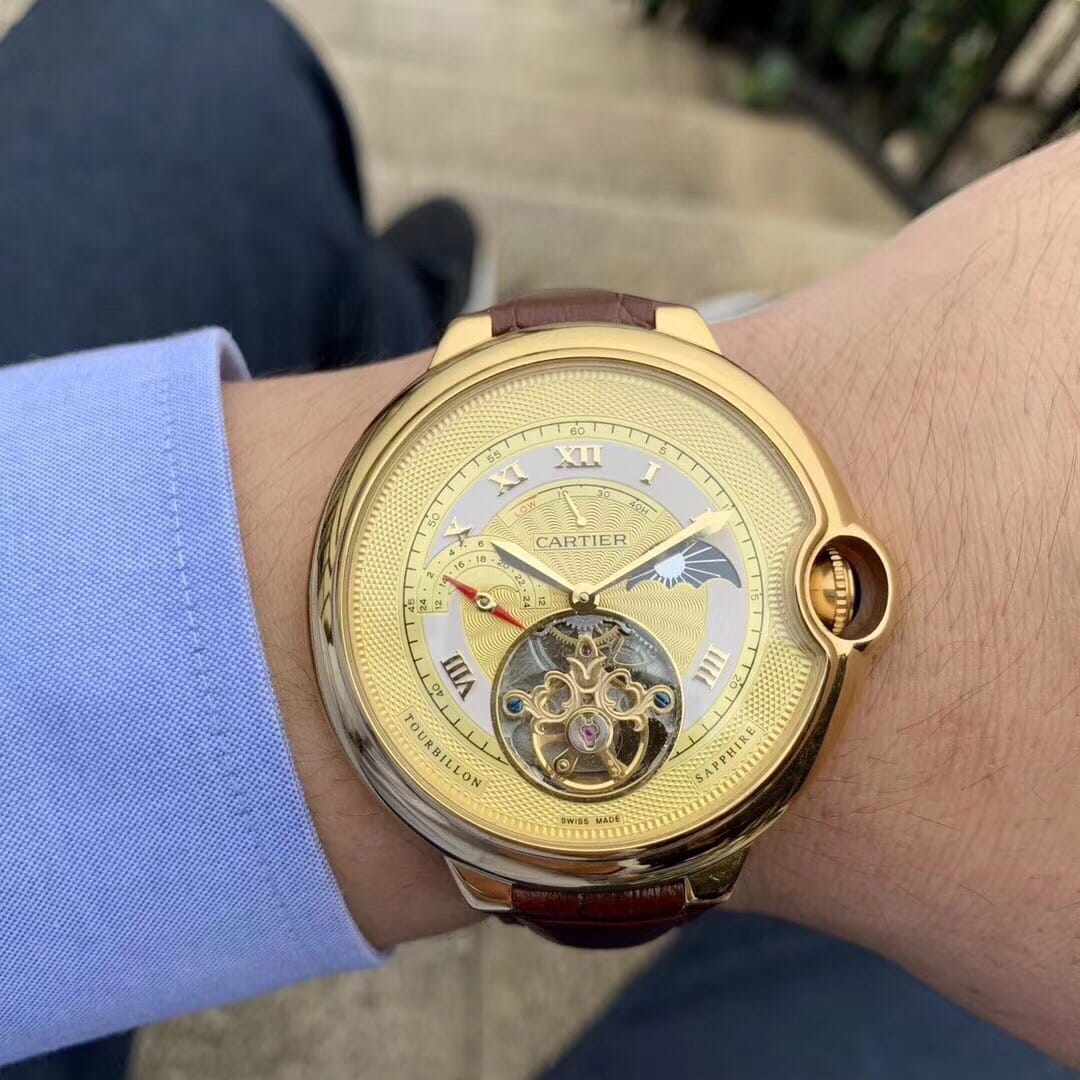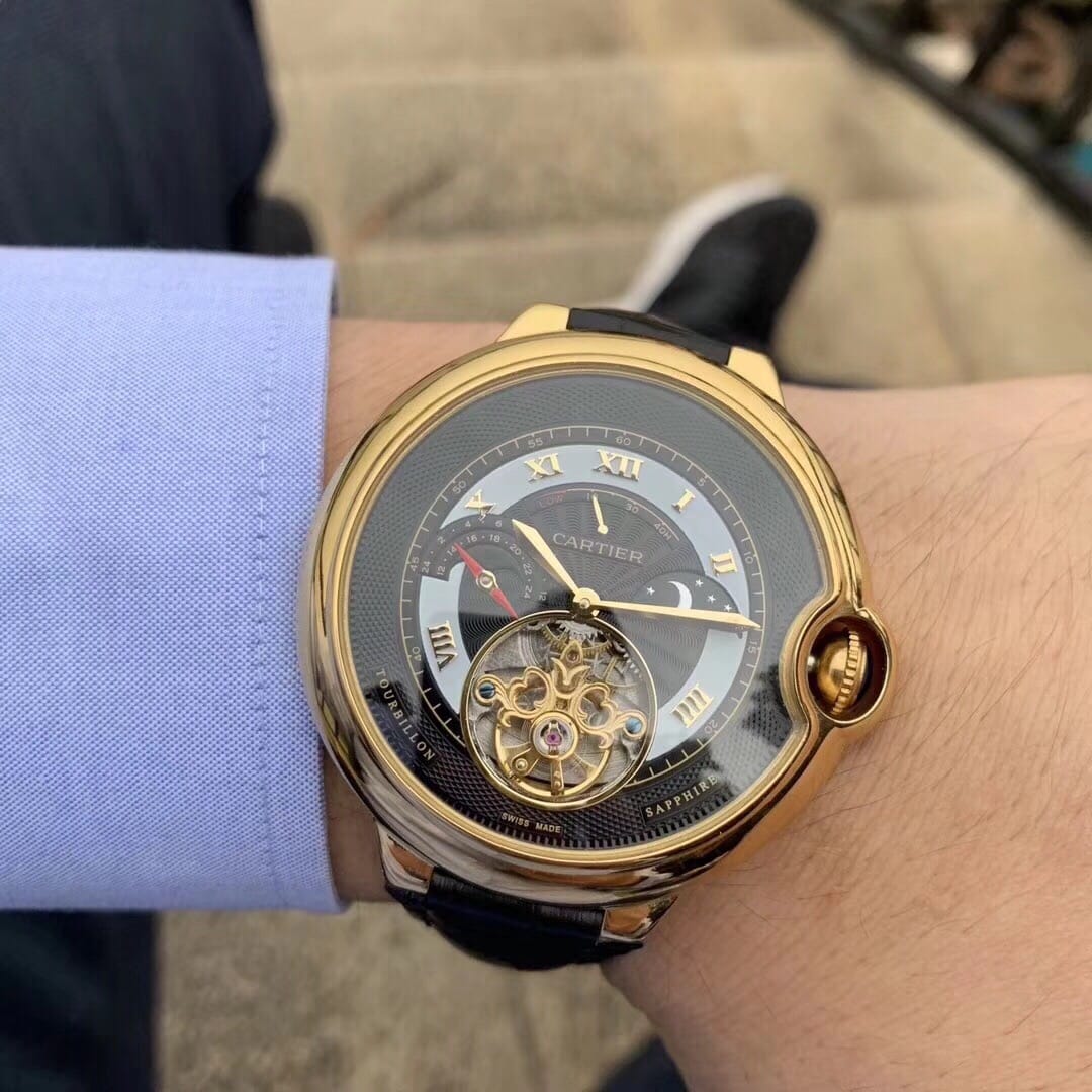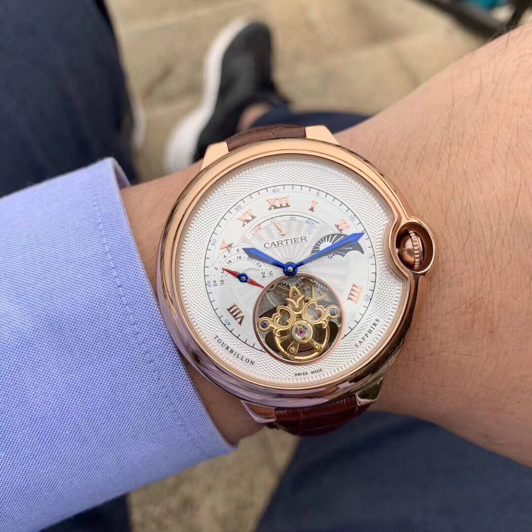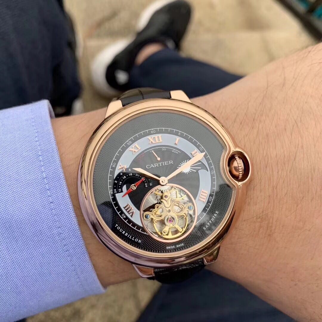 卡地亚-CARTIER??蓝气球陀飞轮?全新推荐?独特经典构造??内置顶级全自动机械机芯 拱型蓝光玻璃镜面 3D雕刻纹路字面 进口牛皮表带?顶级出品精品不断?