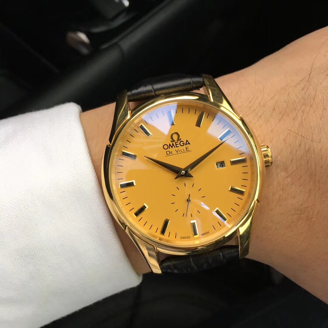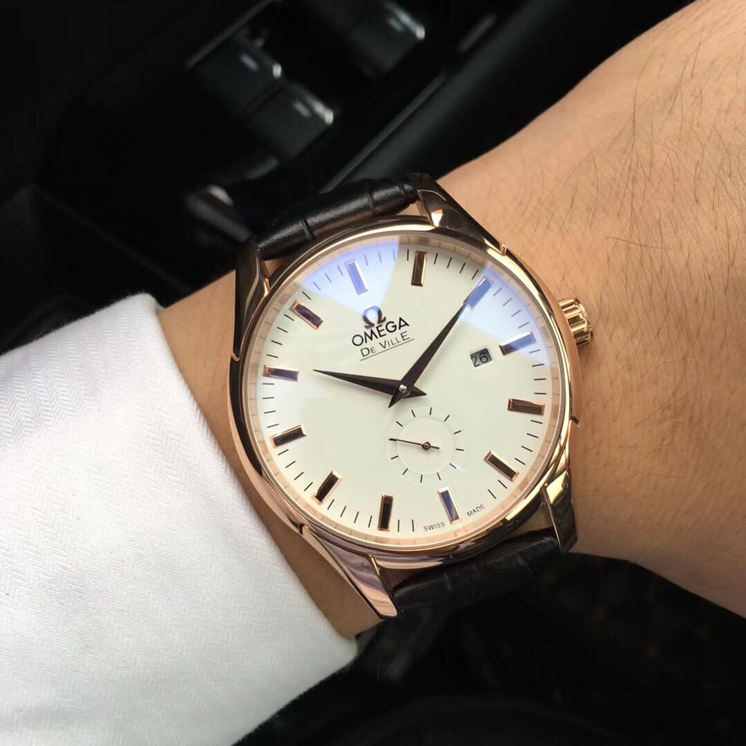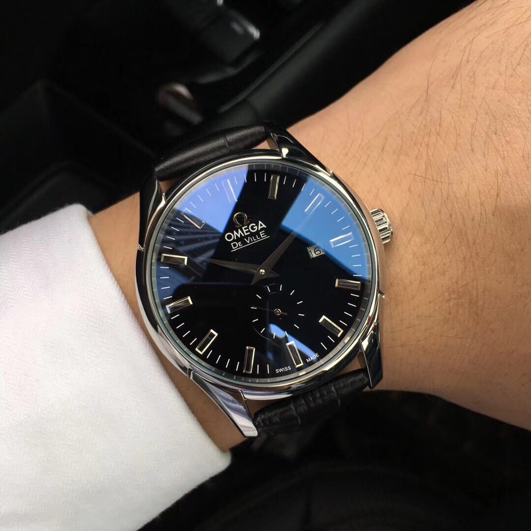 欧米茄-OMEGA??男士两针半精品呈现?40mm*12mm ??高清镀膜玻璃 ?内置全自动上链机械机芯?头层牛皮表带 ?集其内涵与外在于一身的品味选择?顶级出品精品不断?