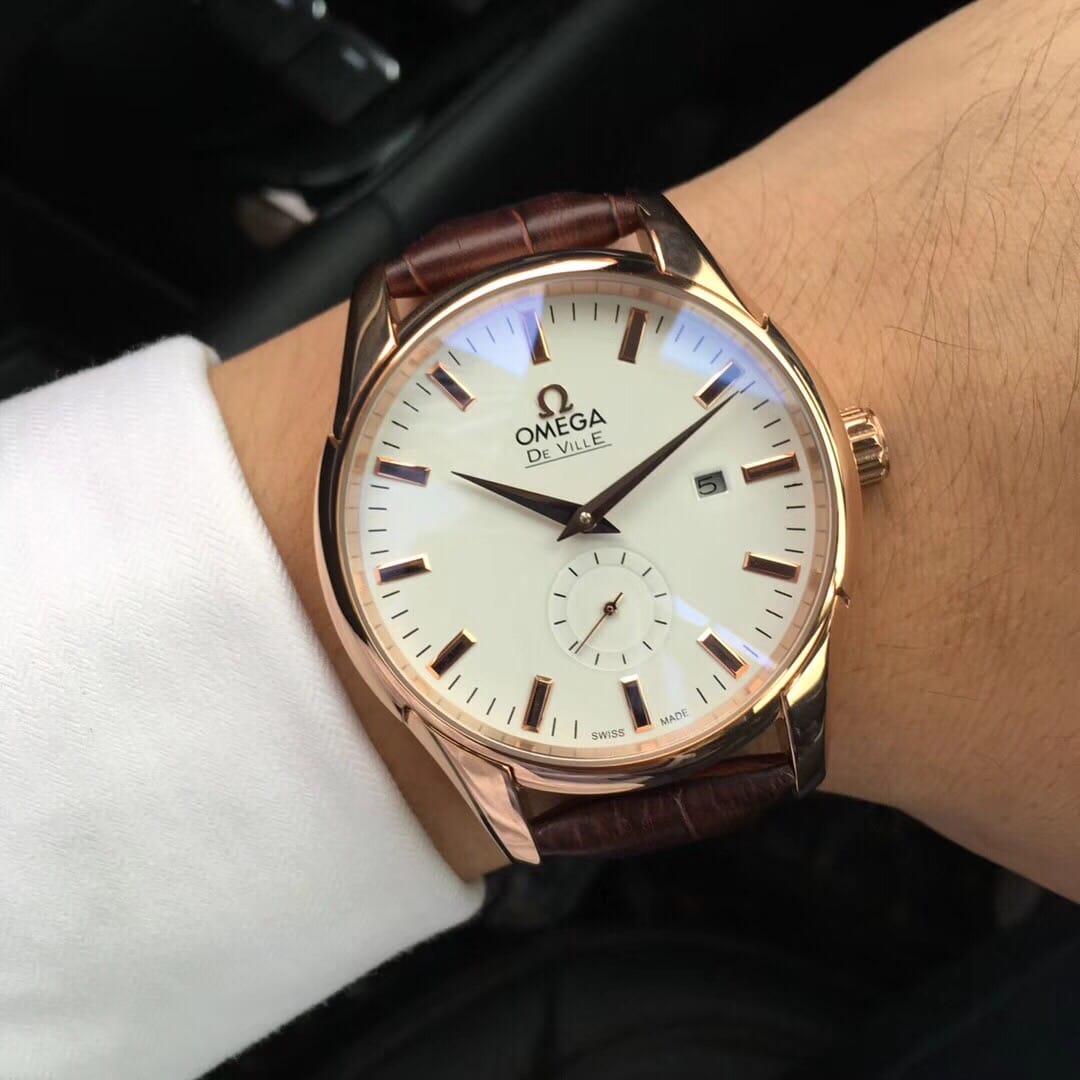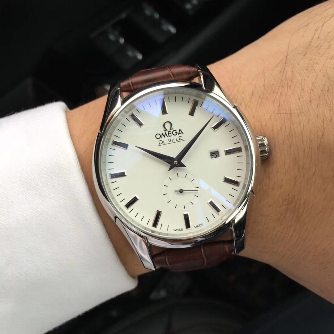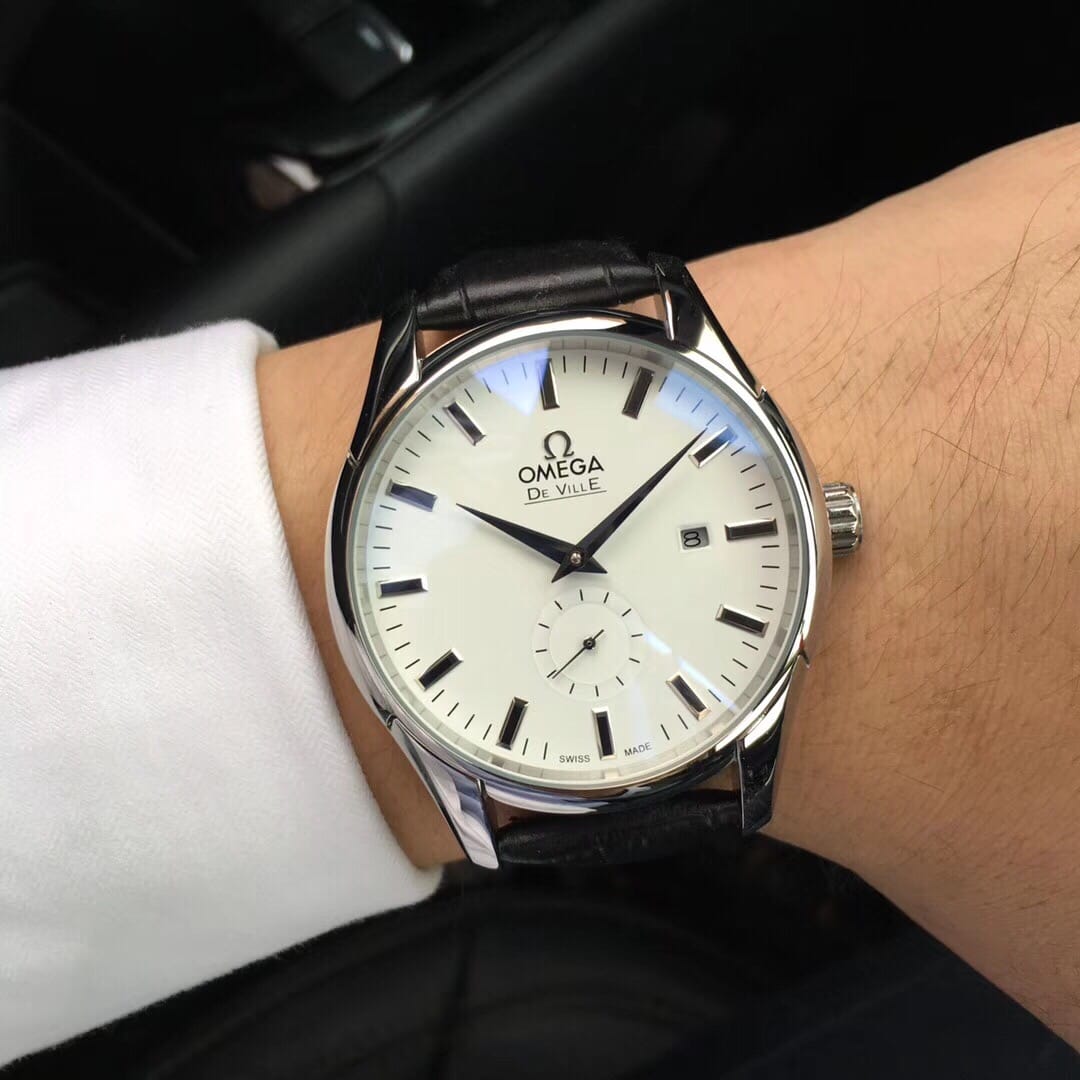 欧米茄-OMEGA??男士两针半精品呈现?40mm*12mm ??高清镀膜玻璃 ?内置全自动上链机械机芯?头层牛皮表带 ?集其内涵与外在于一身的品味选择?顶级出品精品不断?