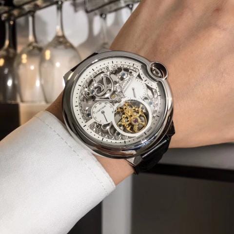 卡地亚-Cartier??百分百防水男士四针多功能飞轮机械腕