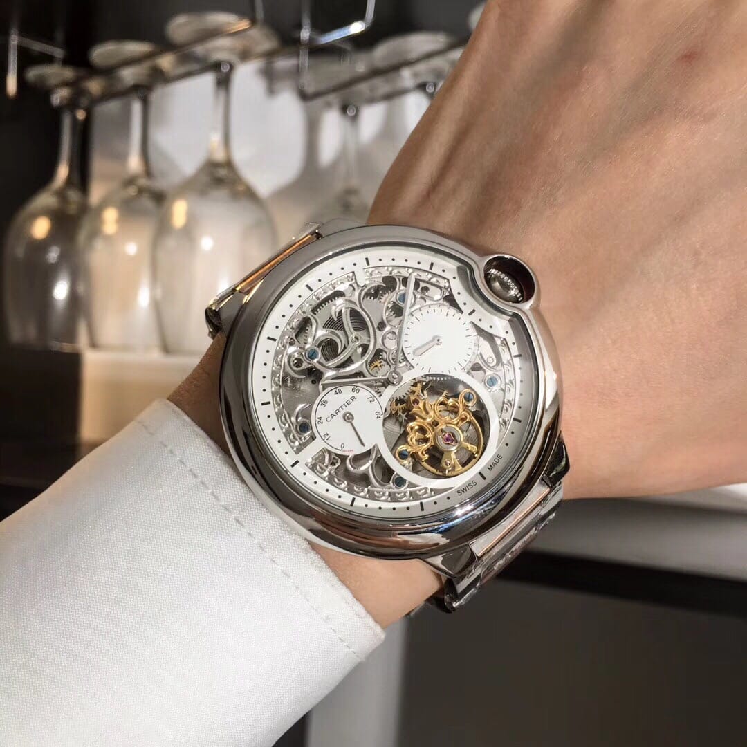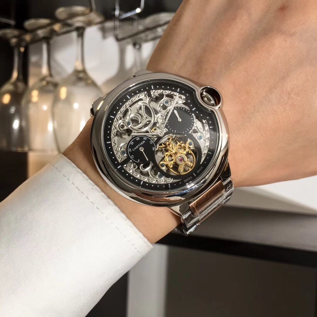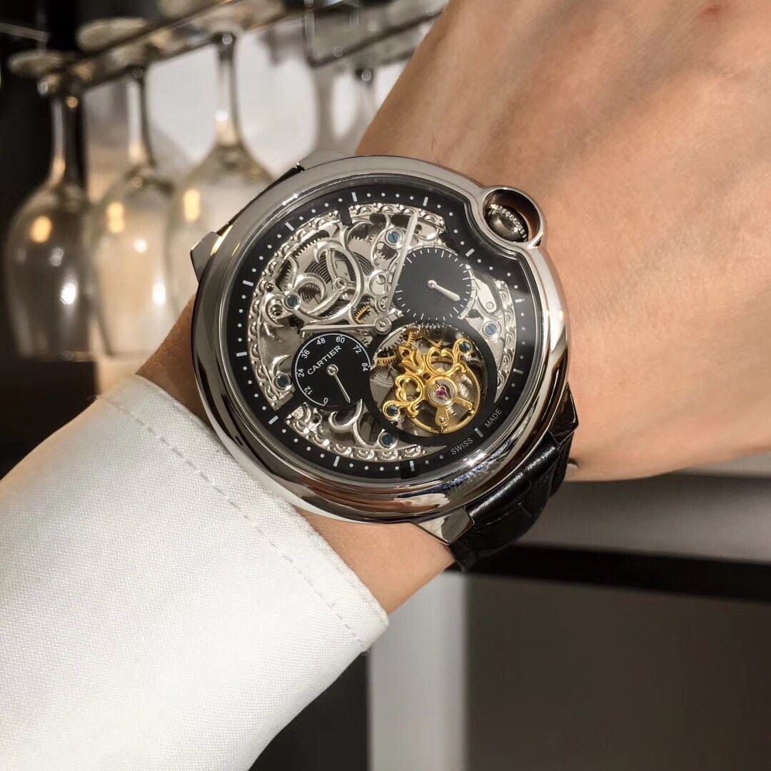 卡地亚-Cartier??百分百防水男士四针多功能飞轮机械腕