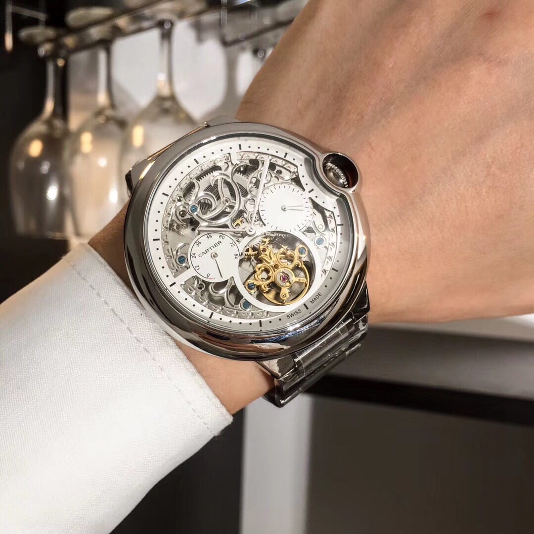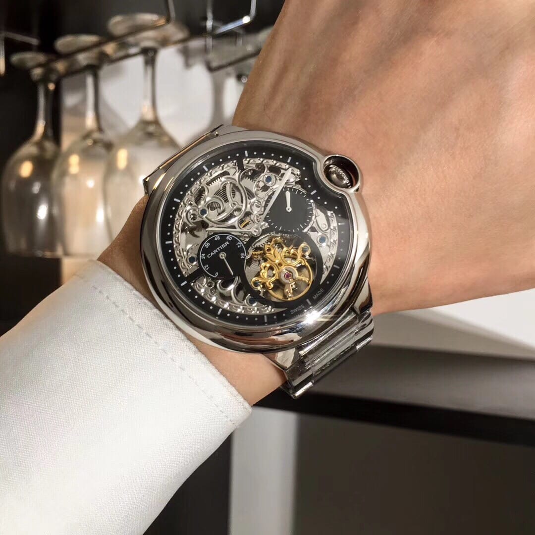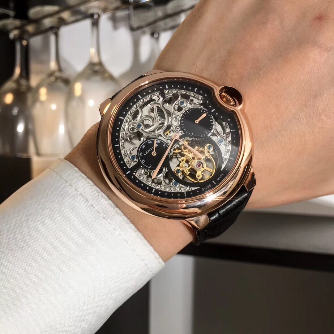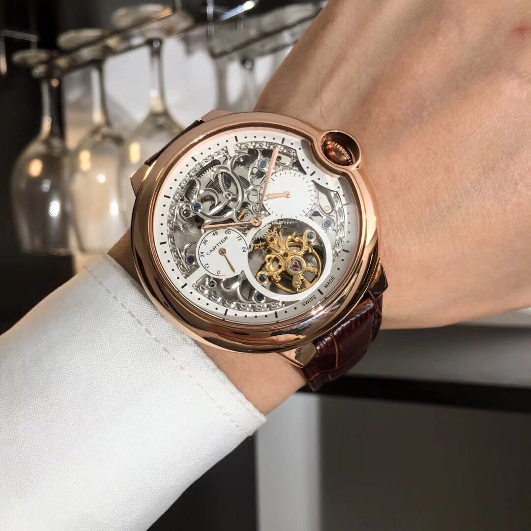 卡地亚-Cartier??百分百防水男士四针多功能飞轮机械腕