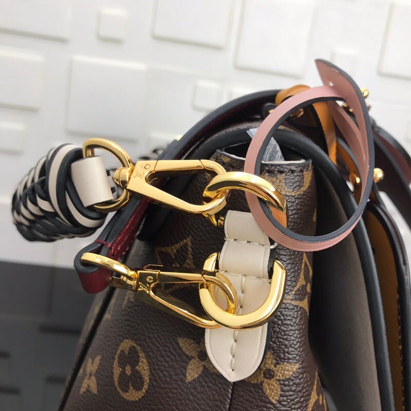 BEAUBOURG 中号手袋M43953此款Beaubourg手袋采用柔软的Monogram帆布材质,汇集多处手工精制细节。手柄由色调缤纷的皮革彩带编织而成,手工染色饰边凸显对比感与色彩浓度。彩色LV皮革饰件与姓名吊牌带来趣味与个性。配有一条可脱卸包带,丰富背携方式。尺寸:35.0 x 24.0 x 15.0 cm