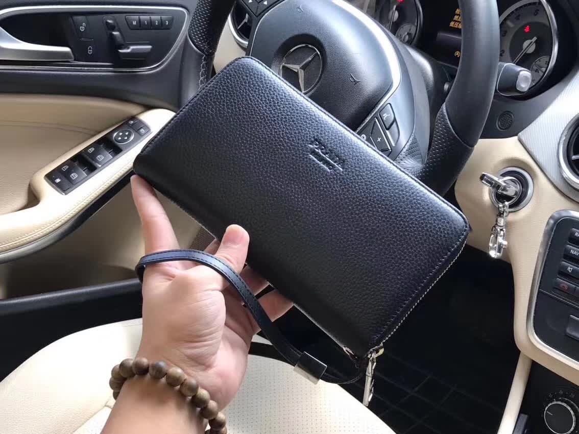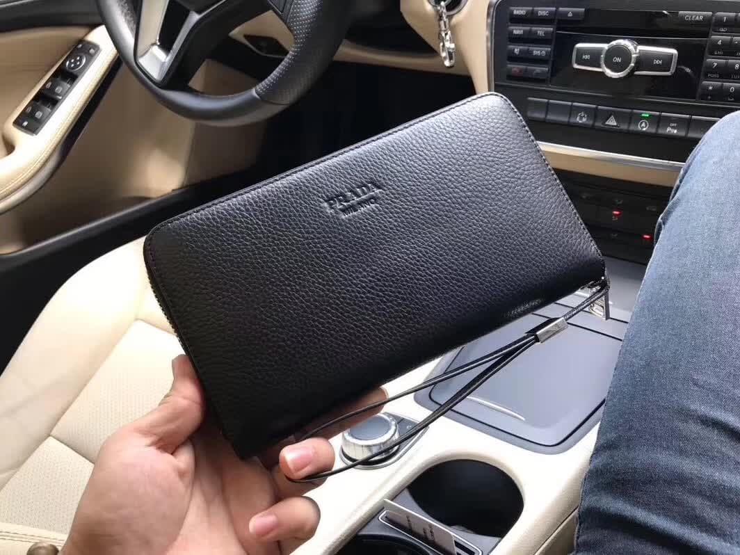 PRADA普拉达 专柜新款??【型号】1189 拉链包【尺寸】21x12x2.5cm【颜色】黑色 高端品质(霸气十足)【材质】配全套包装+礼盒+礼品袋+发票+海关贴 PRADA专柜代购经典??原厂进口?大荔枝纹牛皮??正宗进口YKK标志五金及拉链??皮质定形手感??【原单】独特的品质??时尚的设计??复杂的手工构制?潮男必备??