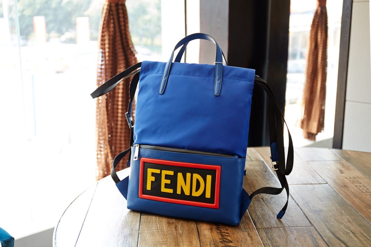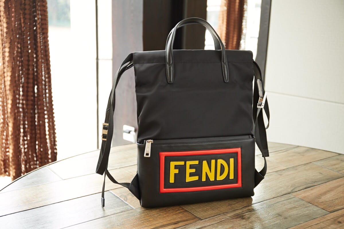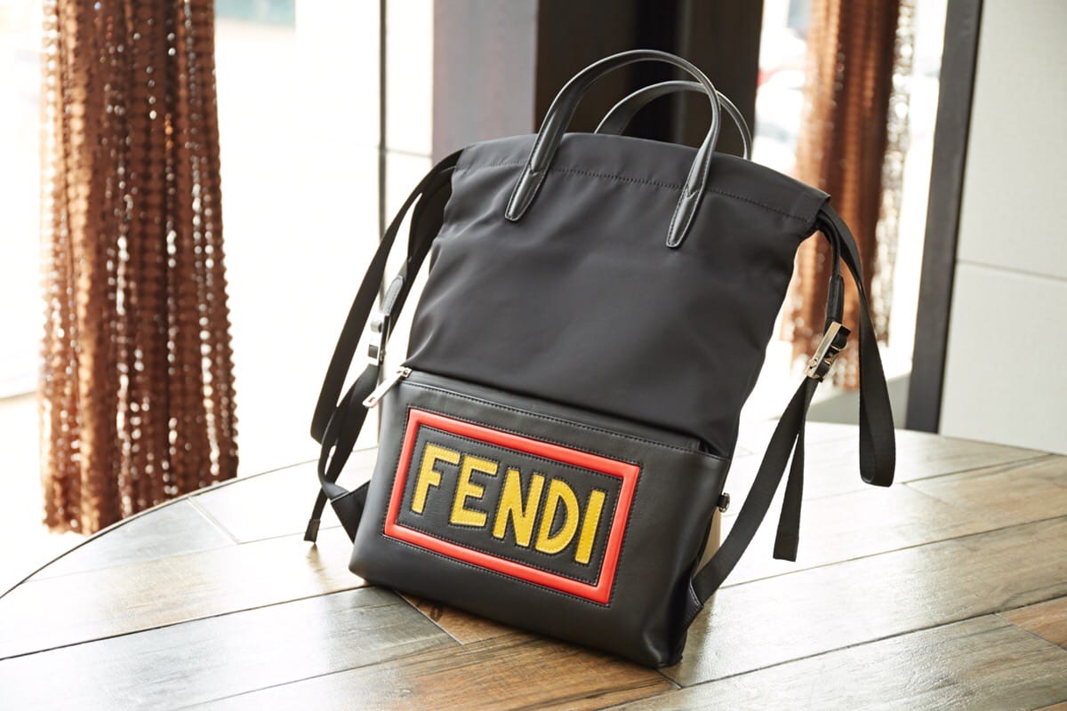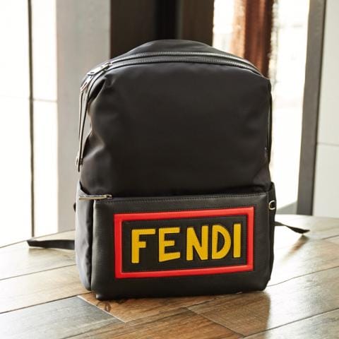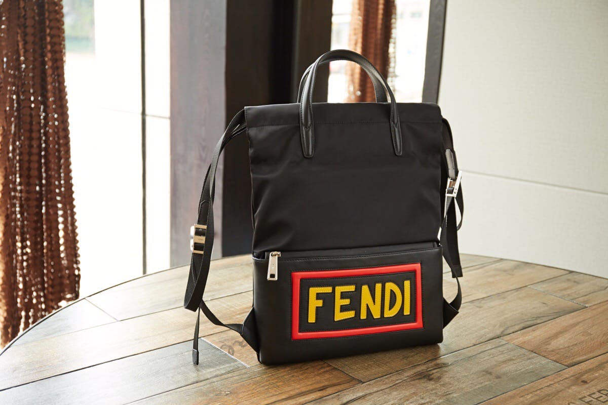 FENDI?微章小怪兽防水购物袋背包,尼龙布配皮革面料轻巧超