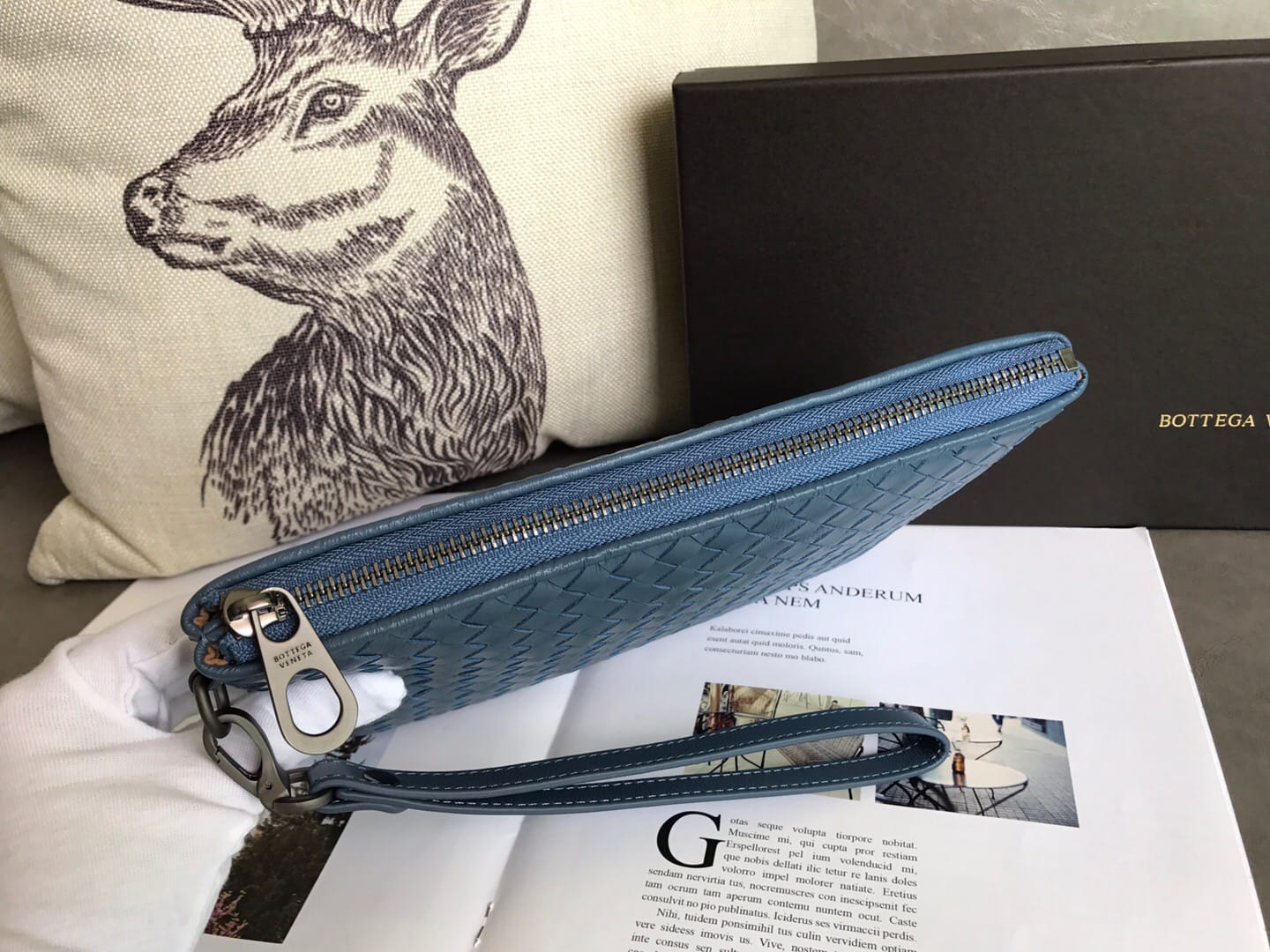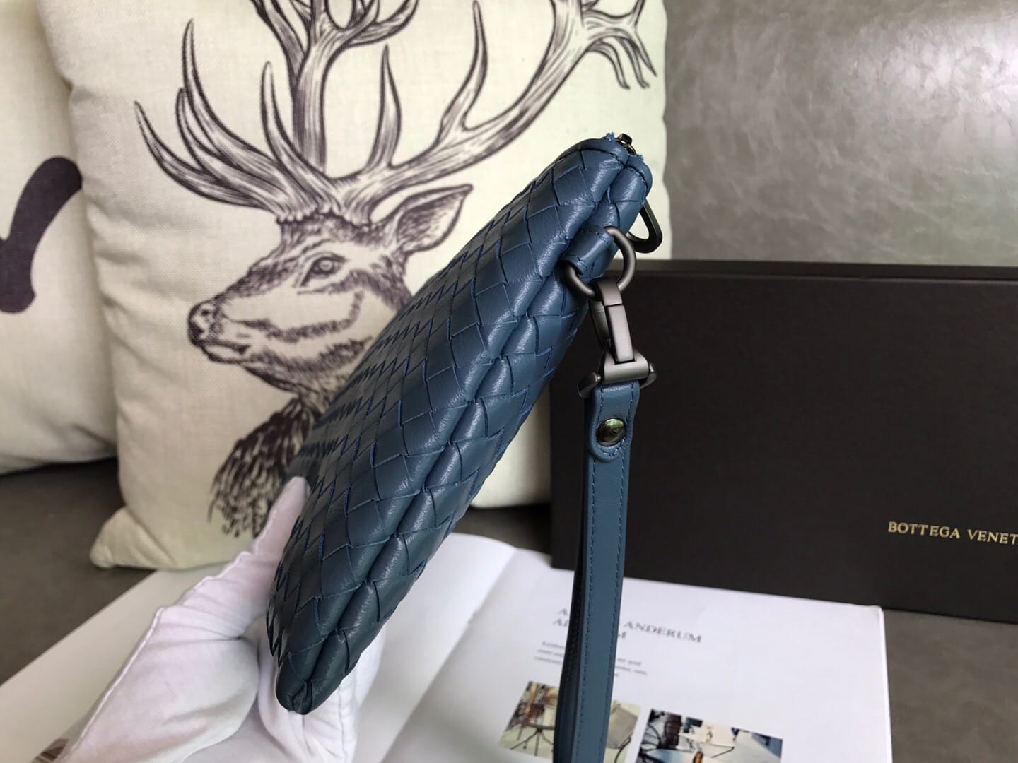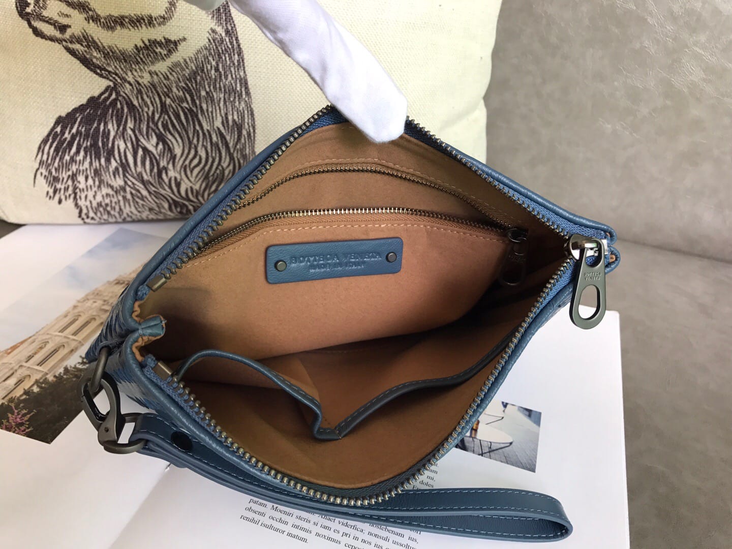 FENDI?宝蓝色和皮革薄背包???拉链外袋綴以由黑色缎面金