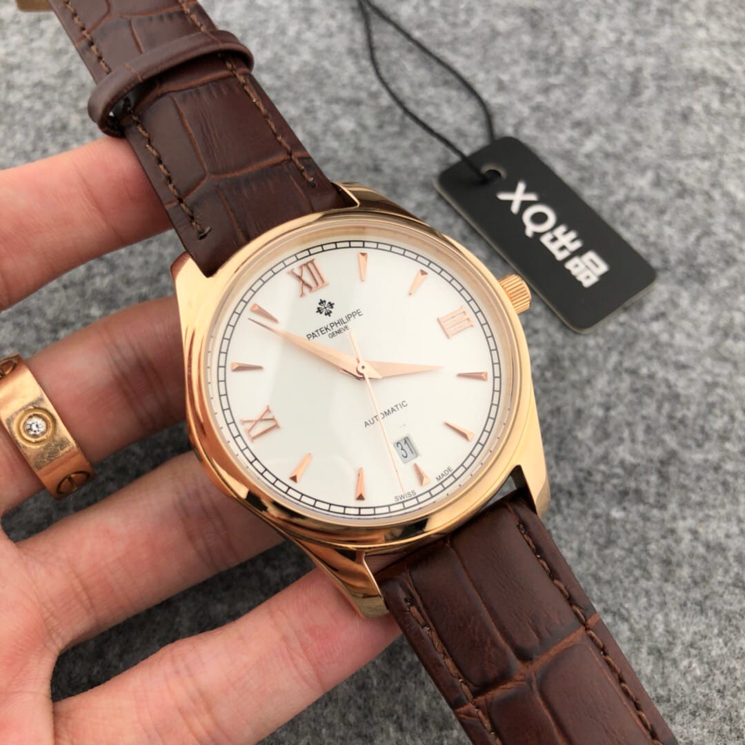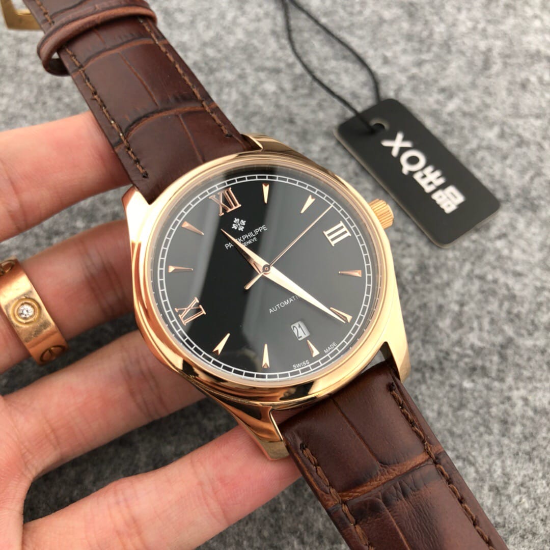 百达翡丽-Patek Philippe???优雅男士腕表 全自动机械机芯,316精钢表壳,矿物质水晶镜面 进口小牛皮皮带 [玫瑰][玫瑰][玫瑰]直径40mm厚12mm,XQ出品 精品不断