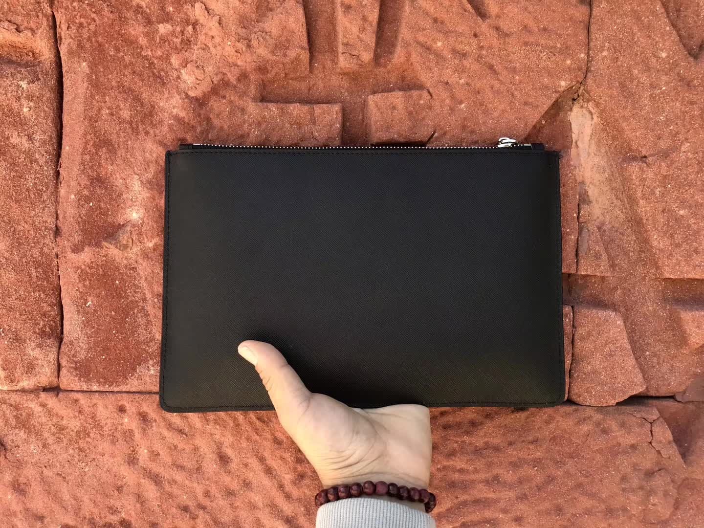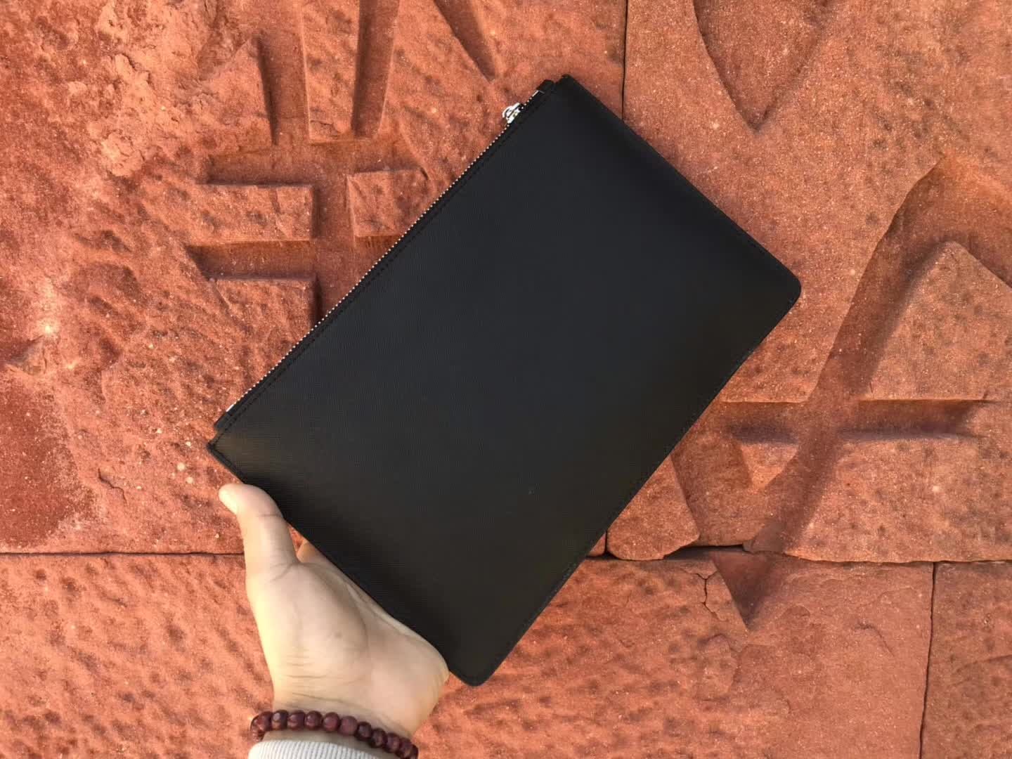 【Prada】原单品质 最新款男士手包 005F 进口十字纹牛皮 里外全皮 对版拉链牌 高富帅 时尚 潮男必备 型号9001-5 尺寸 28*18 黑色 ?全套包装