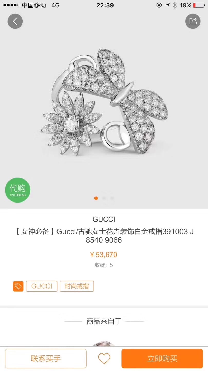 【配全套包装】?GUCCI 古驰 新款蝴蝶开口戒指 原版高端