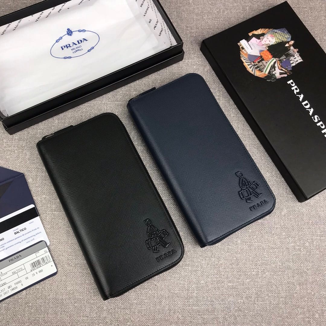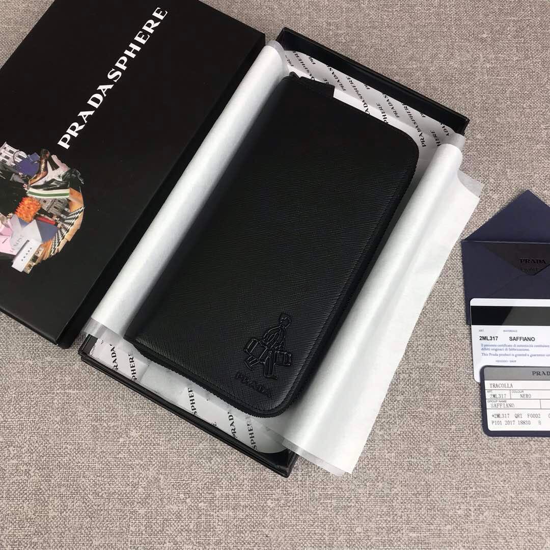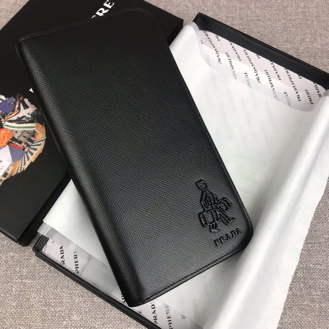 【原单代购级】PRADA新款男士单拉链钱包?专柜最新同色标志