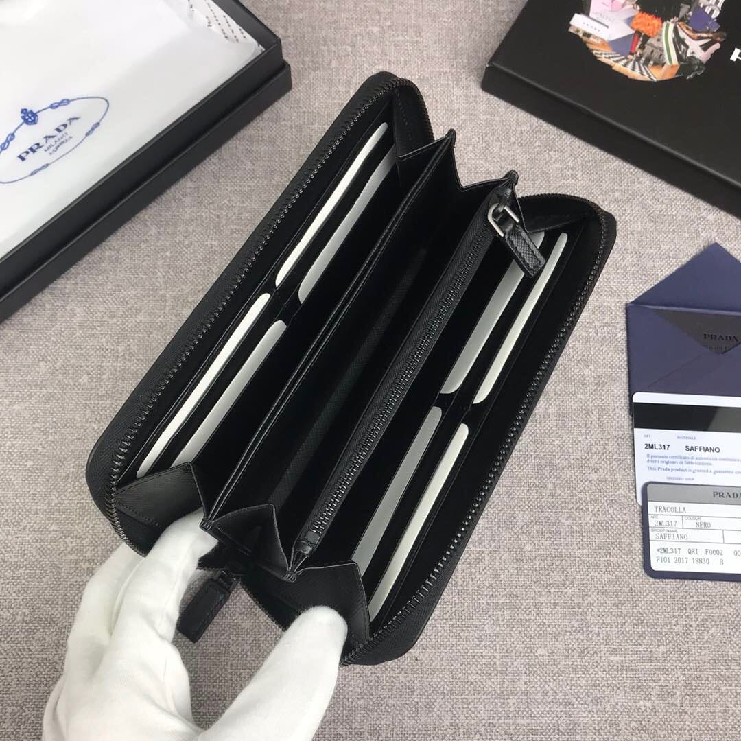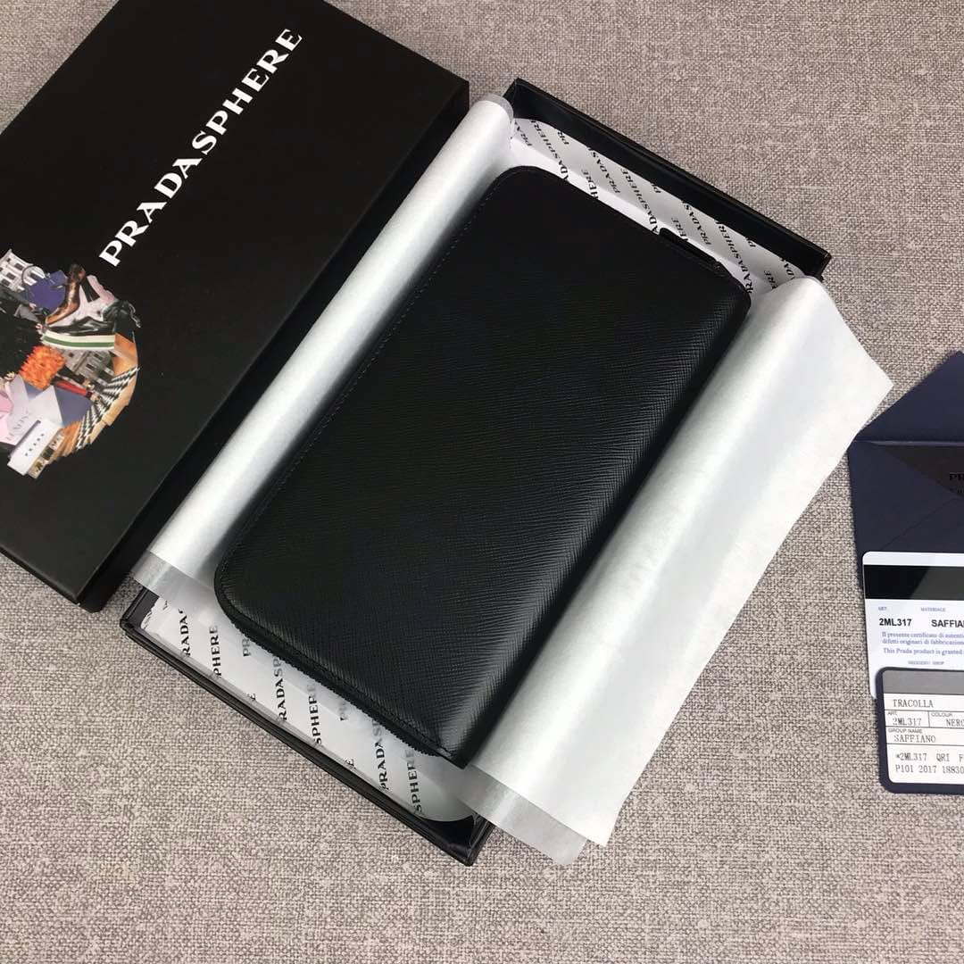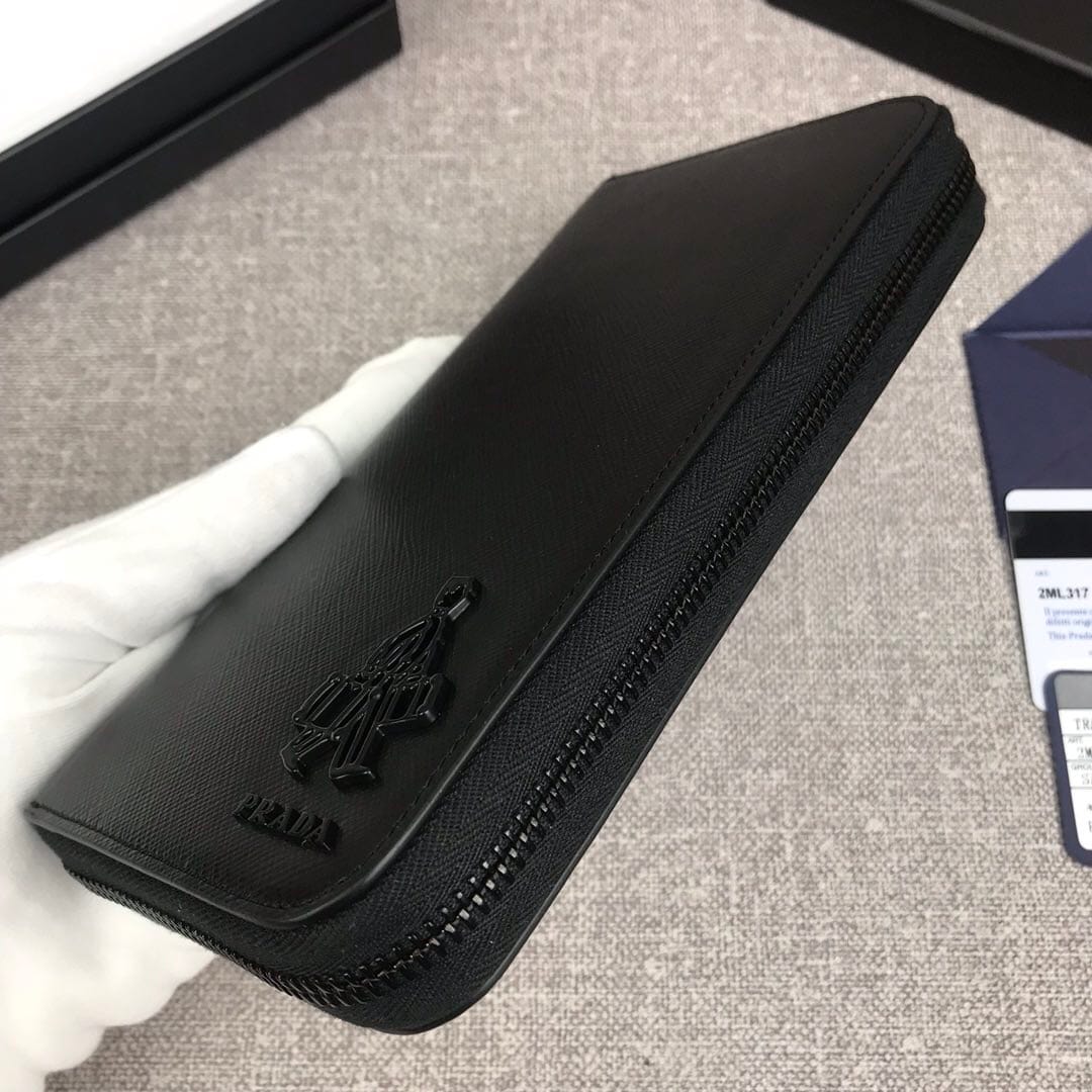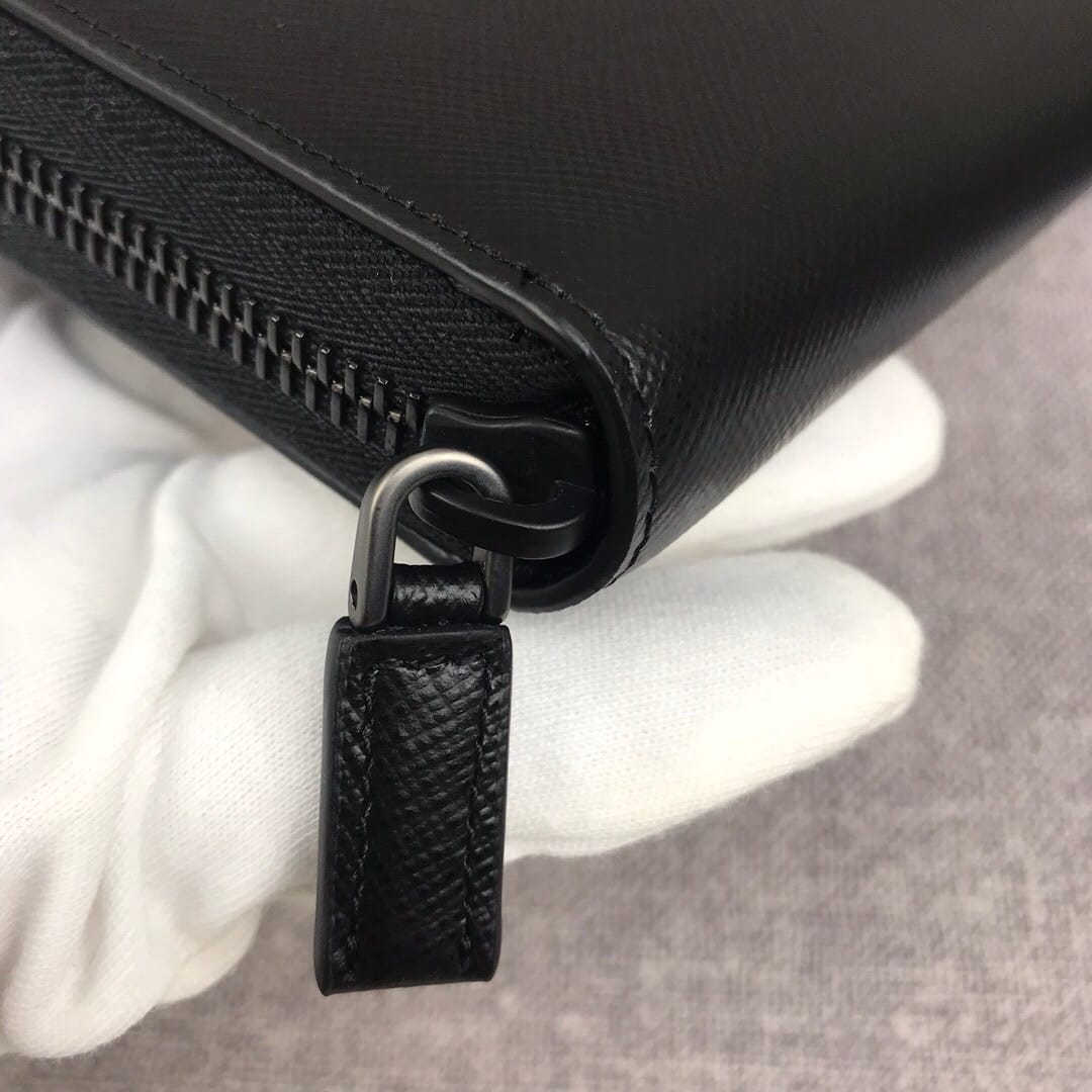 【原单代购级】PRADA新款男士单拉链钱包?专柜最新同色标志