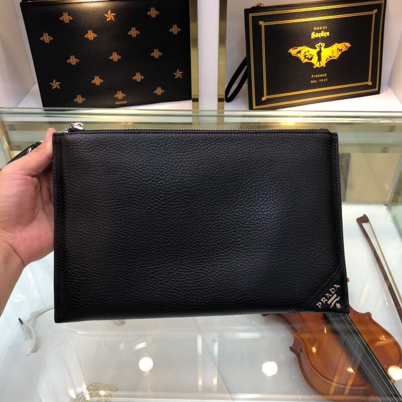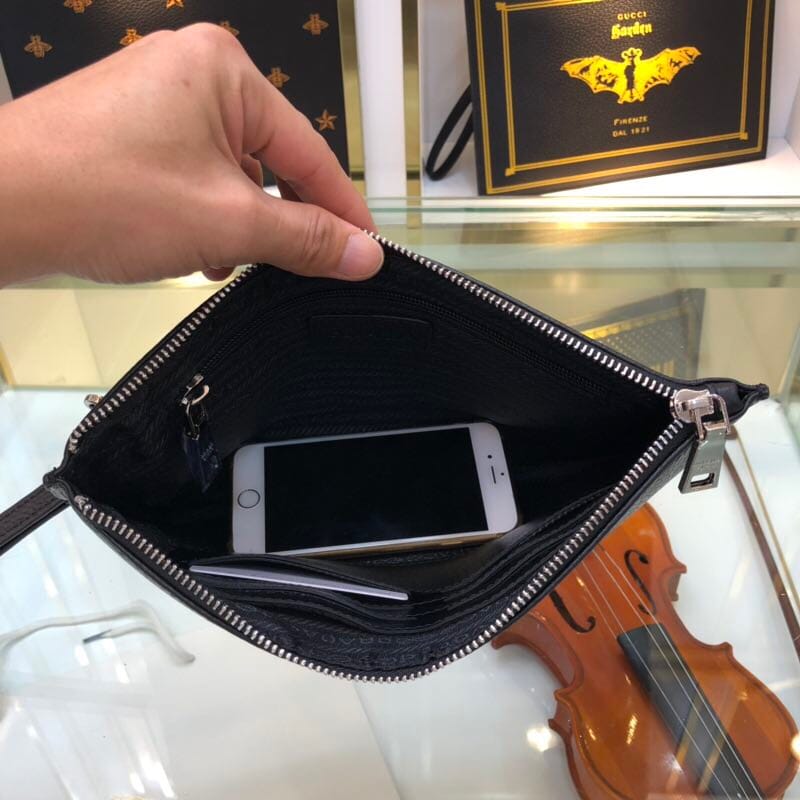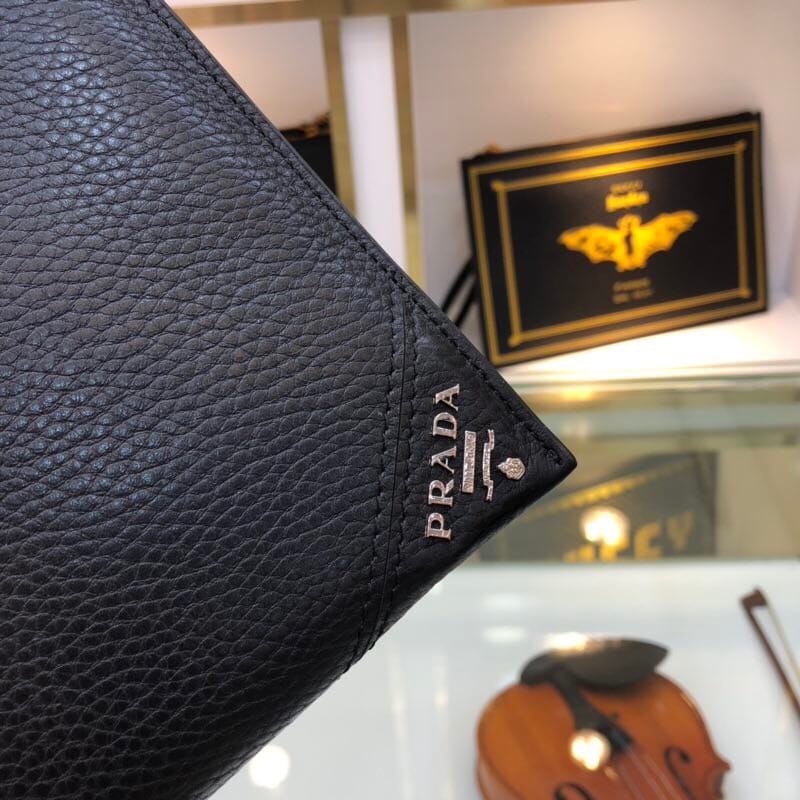 【原单代购级】PRADA新款男士单拉链钱包?专柜最新同色标志