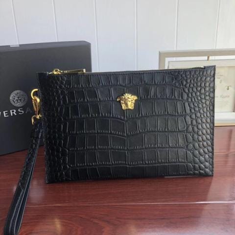 VERSACE手包,包身采用高端头层进口树糕纹牛皮,整包采用