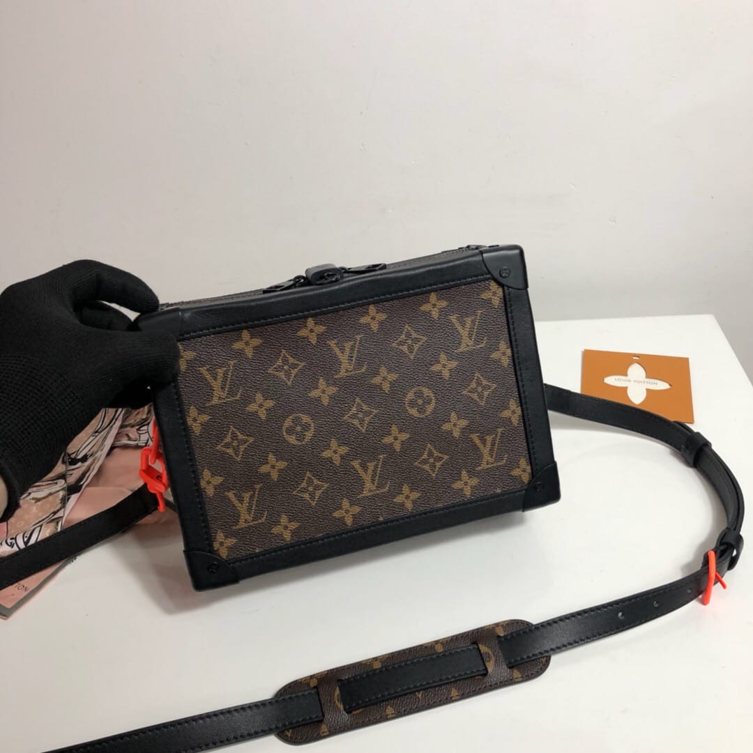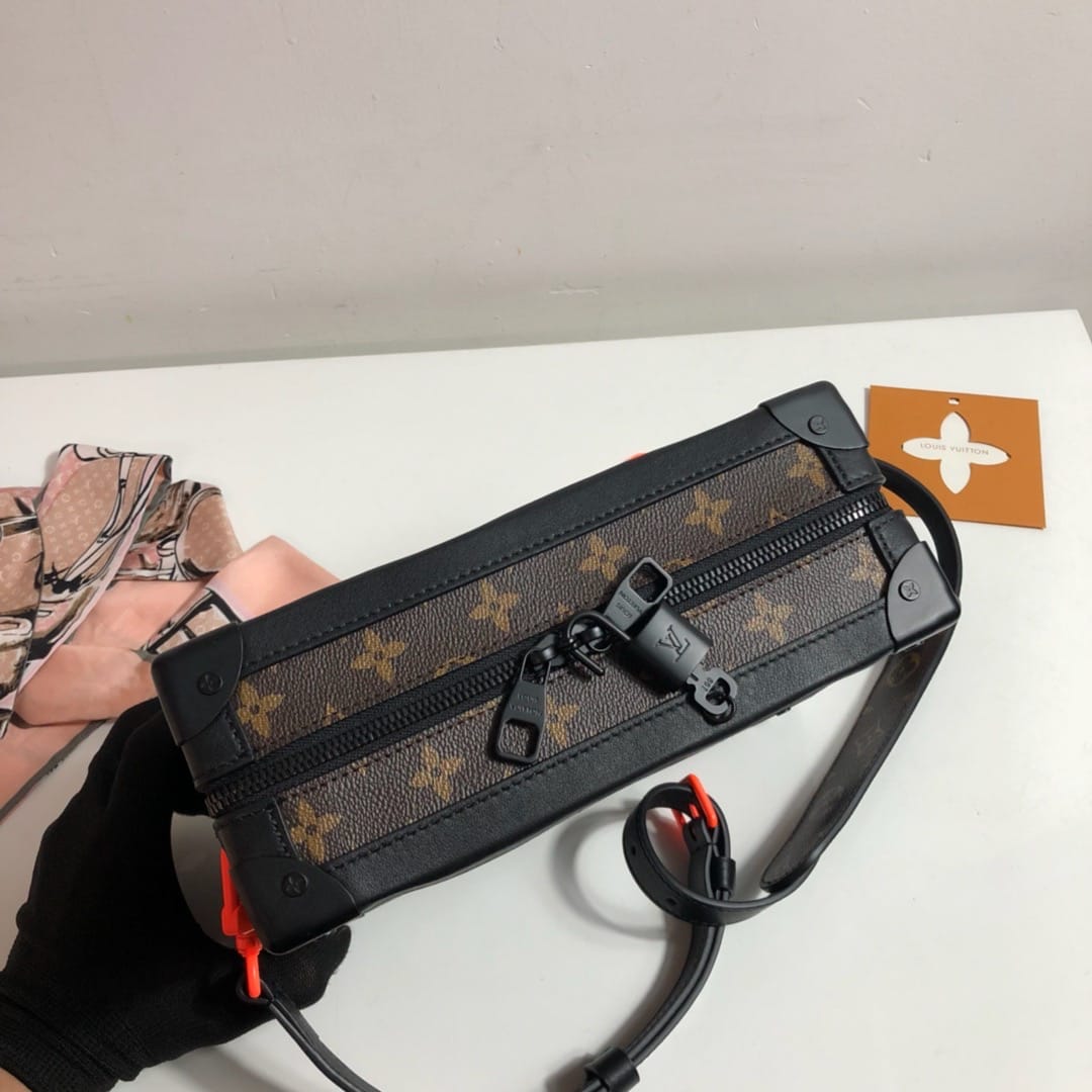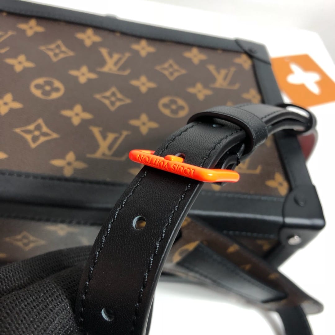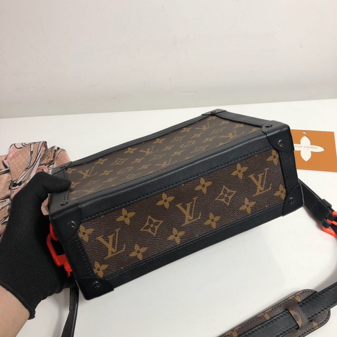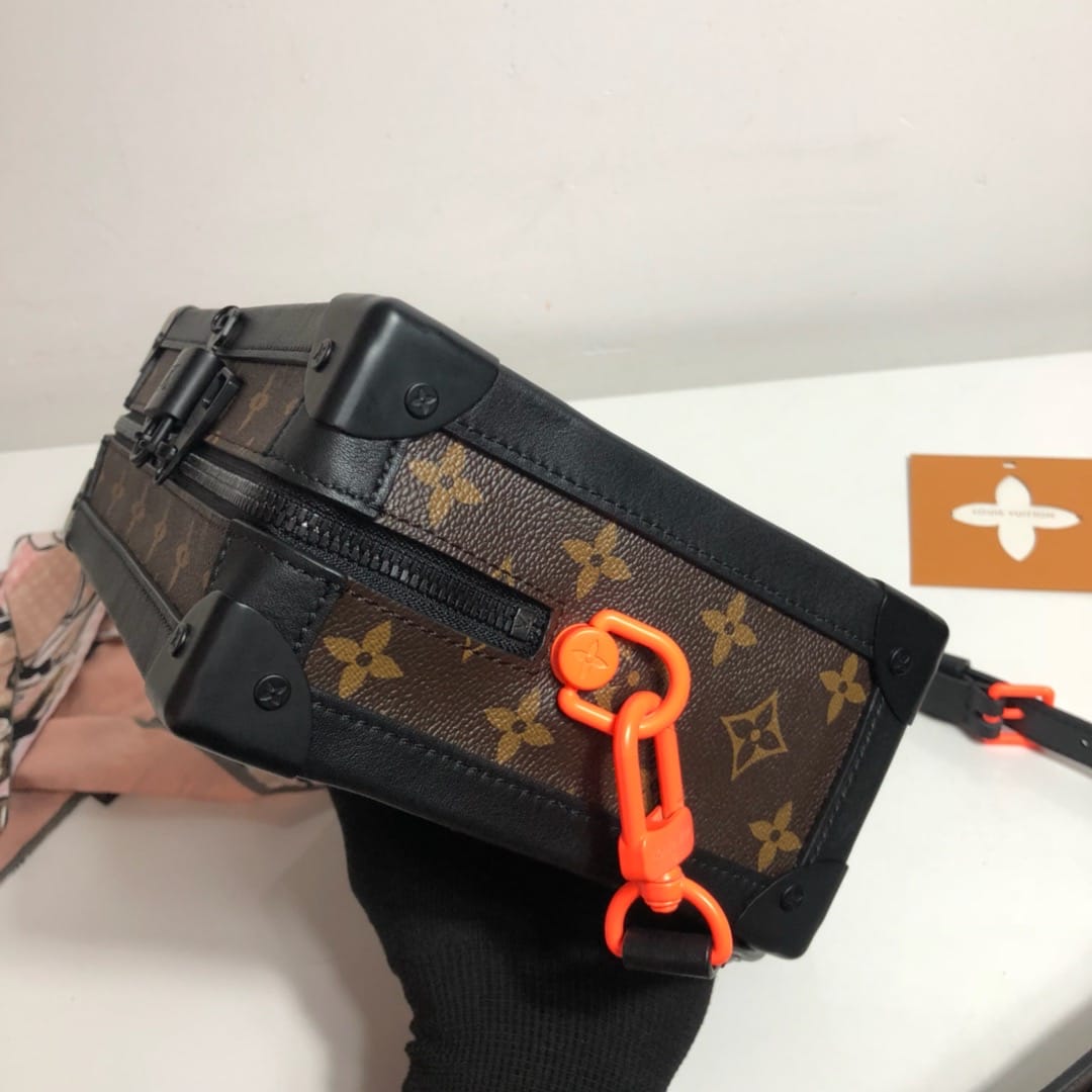 【顶级原单】M44427??2019限量走秀新款软盒子,形象感极强的软造型代替了以往的硬设计单品 棱角分明的强势感融合Box形状 经典monogram老花演绎 在纷繁的包界显得格外与众不同 正品开发 橙色五金有点荧光色的效果 容量也很大男女通用款,尺寸:25x17x9.5cm,