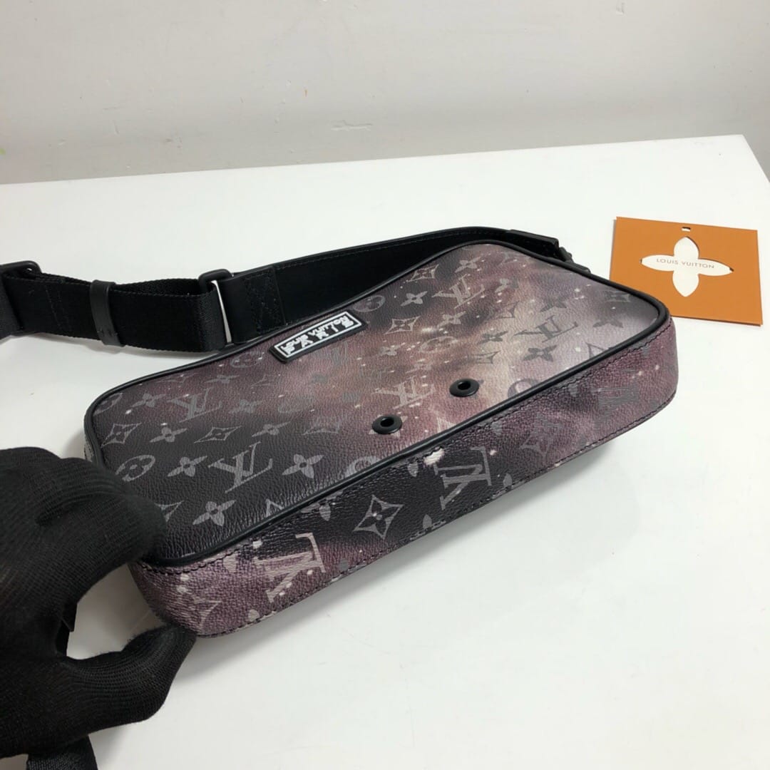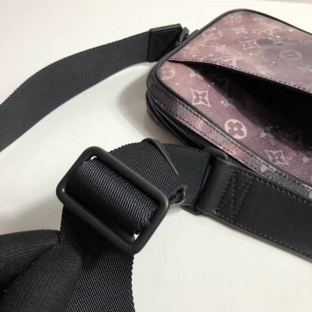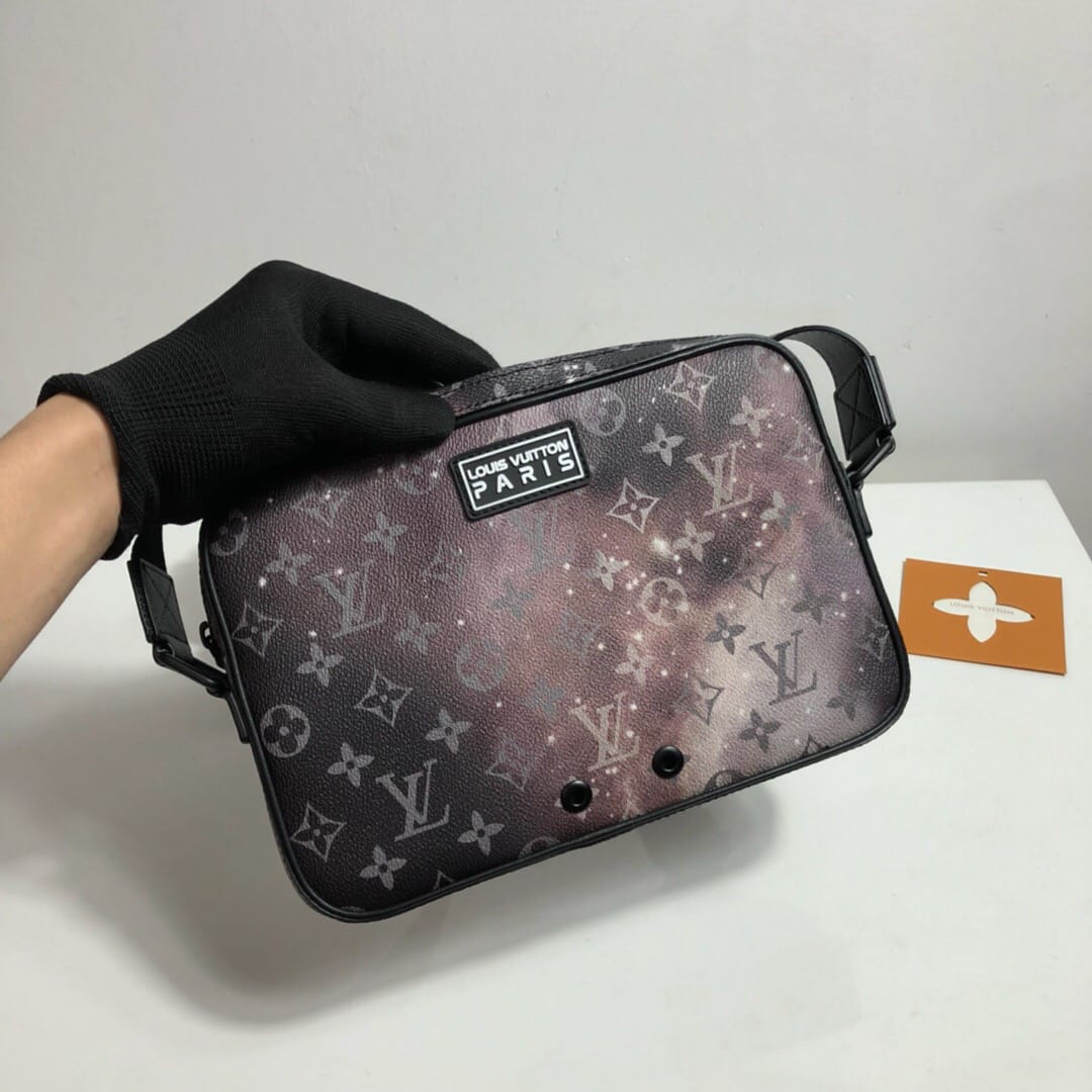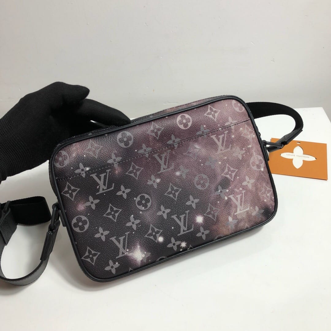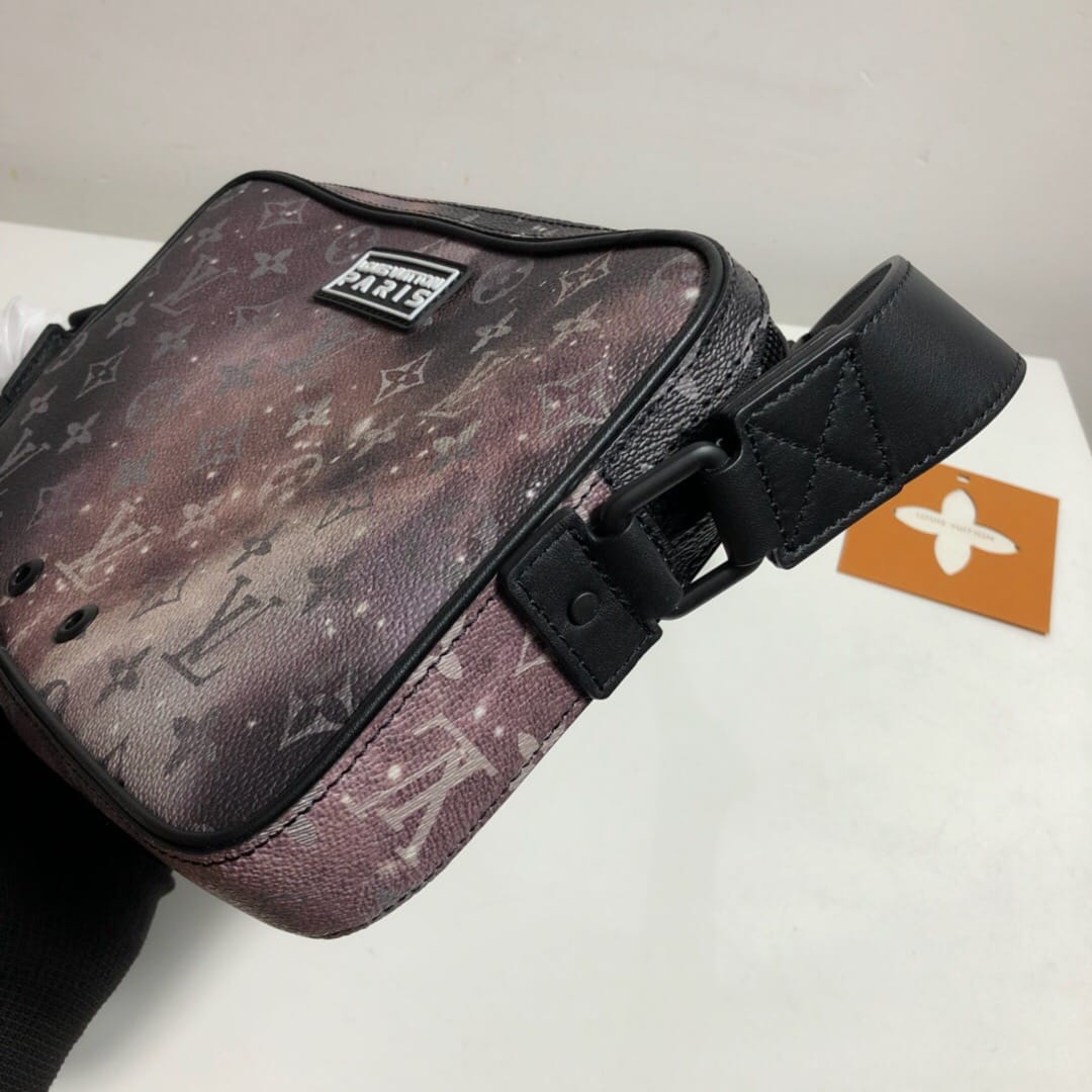 【顶级原单】M44165??新款?ALPHA 邮差包 2019春夏季前预展系列新品,Alpha邮差包采用Monogram Galaxy帆布面料,小巧有型,适合斜跨。男装艺术总监Virgil Abloh向包袋融入“Louis Vuitton Paris”橡胶贴饰、皮革名牌与蓝色铆钉等细节设计,令包袋更显时尚。尺寸:26x17x5cm,