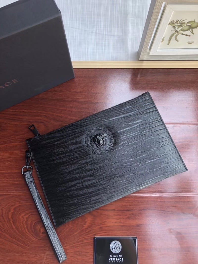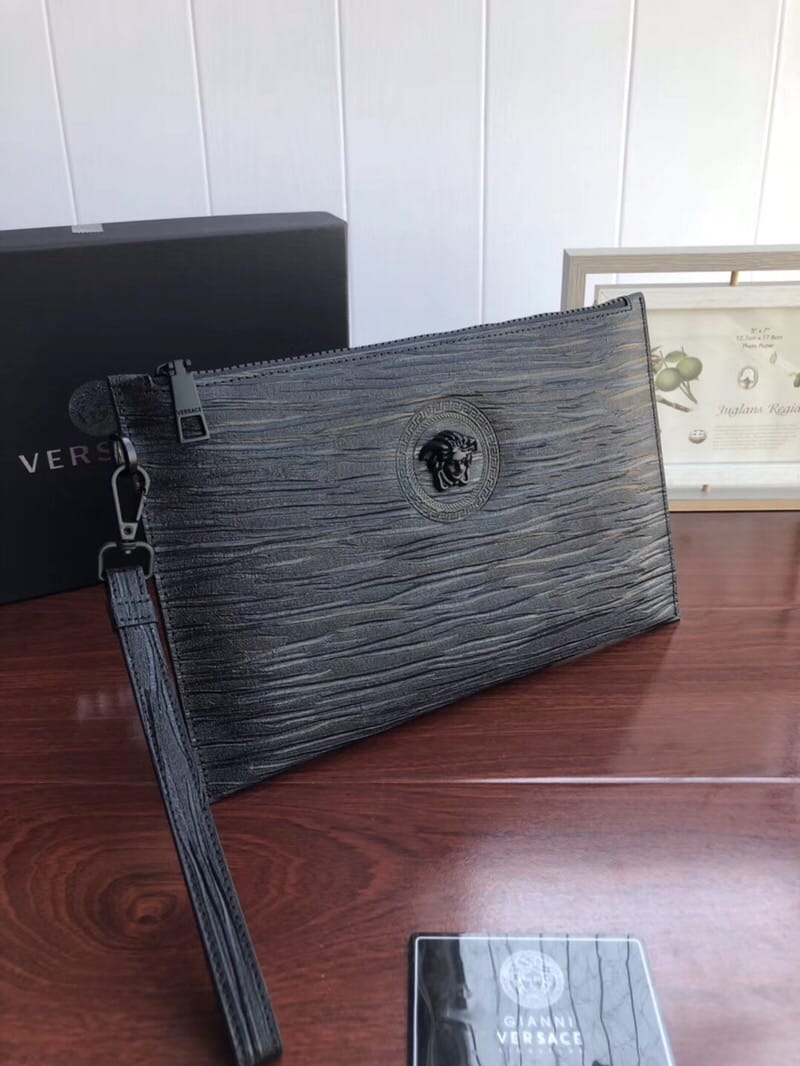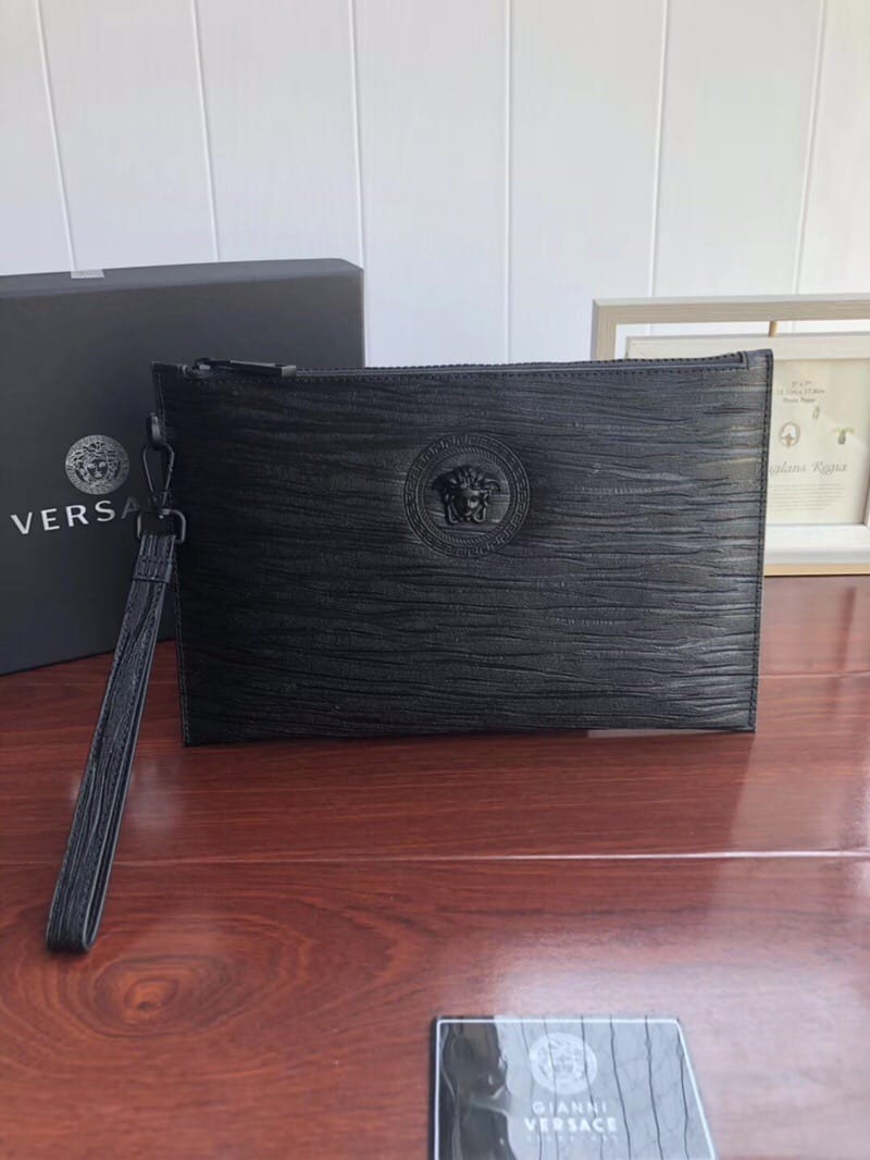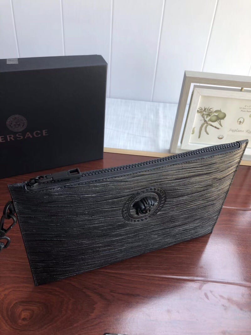VERSACE手包,包身采用高端头层进口树糕纹牛皮,整包采用