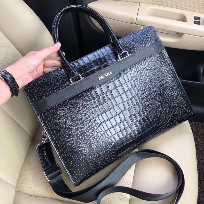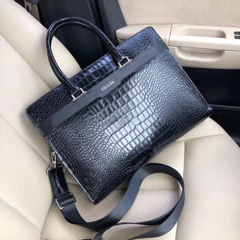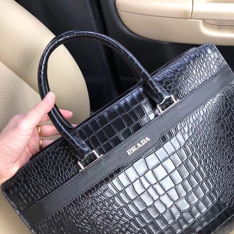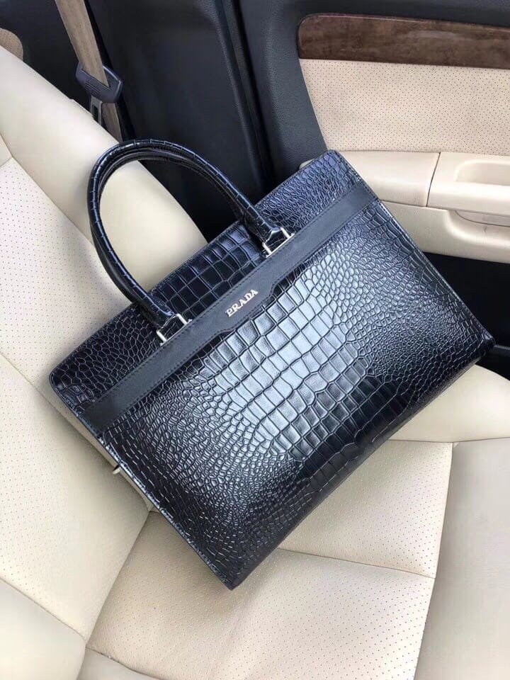 普拉达??最?爆款?男士商务?意大利??进口顶级牛皮压鳄鱼纹