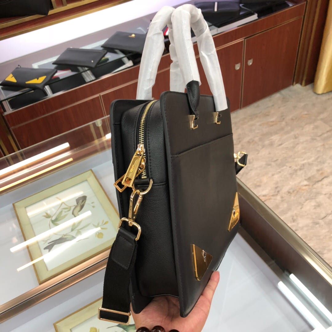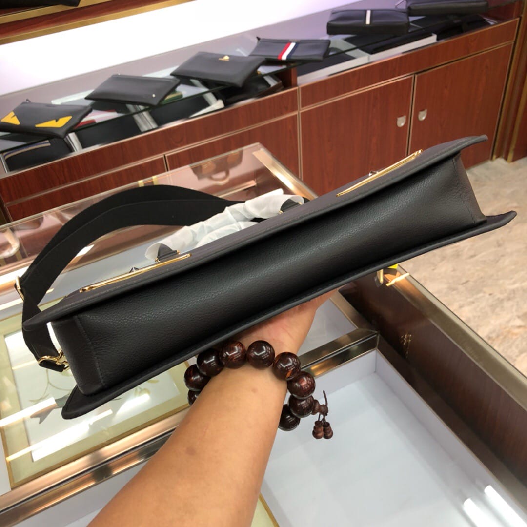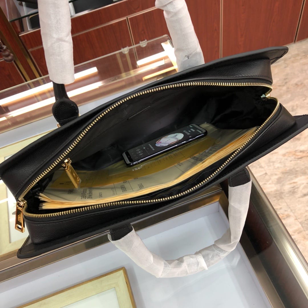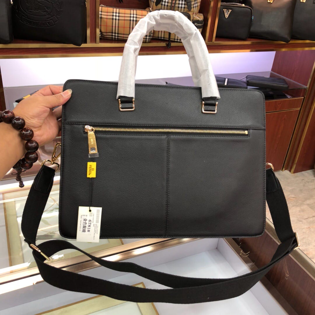 原官网6781薄款拉链开合双F公文包。可调节、可拆卸肩带和双