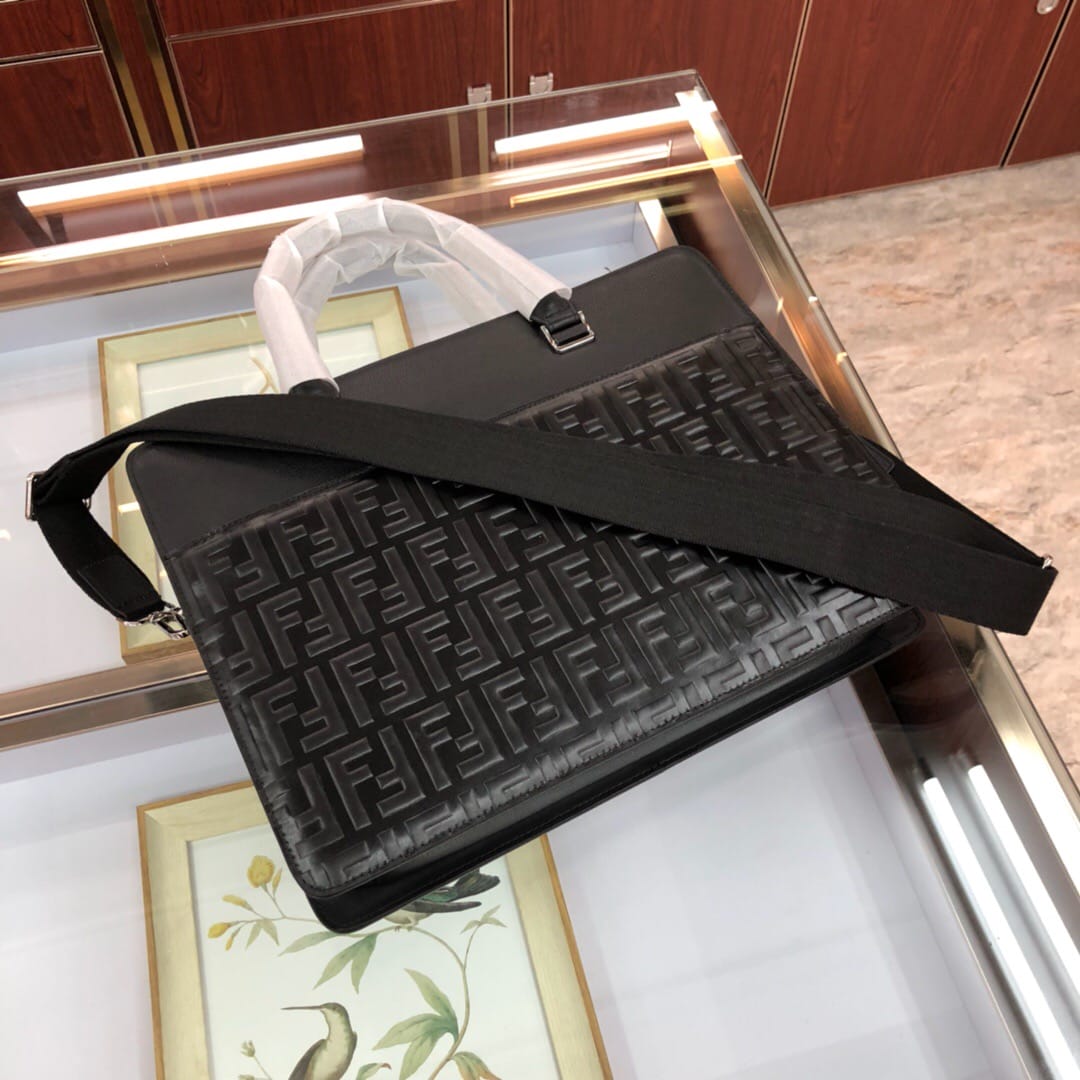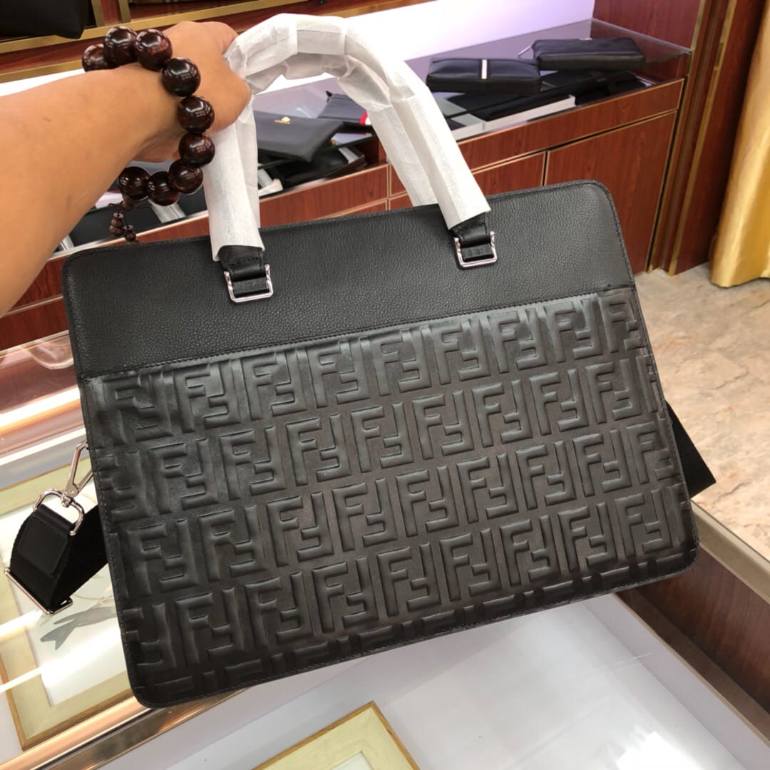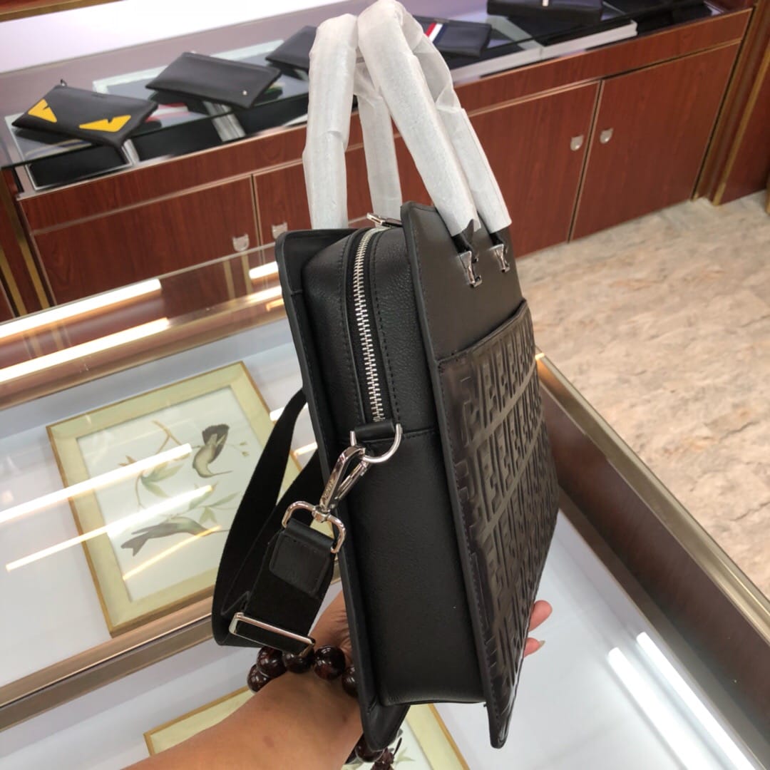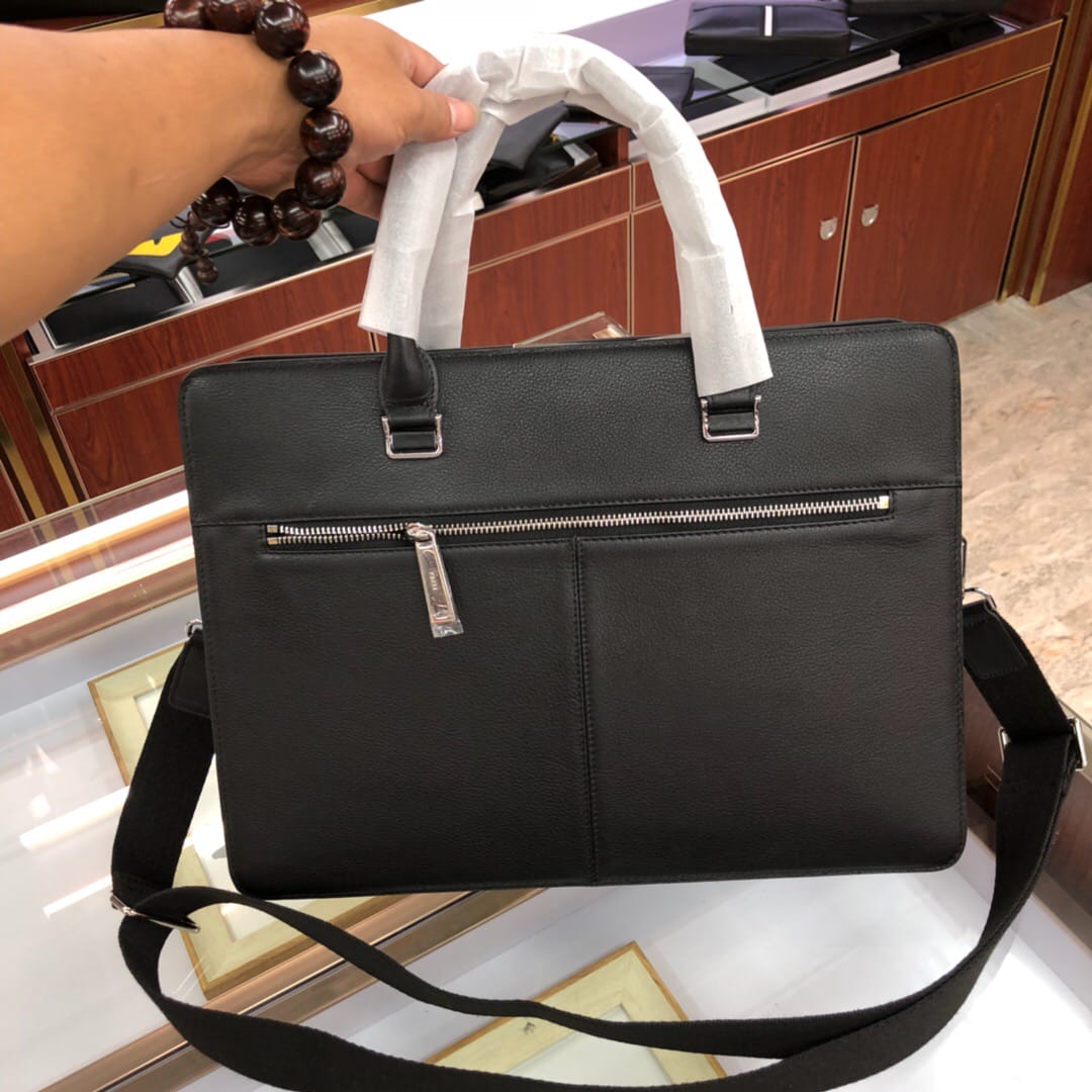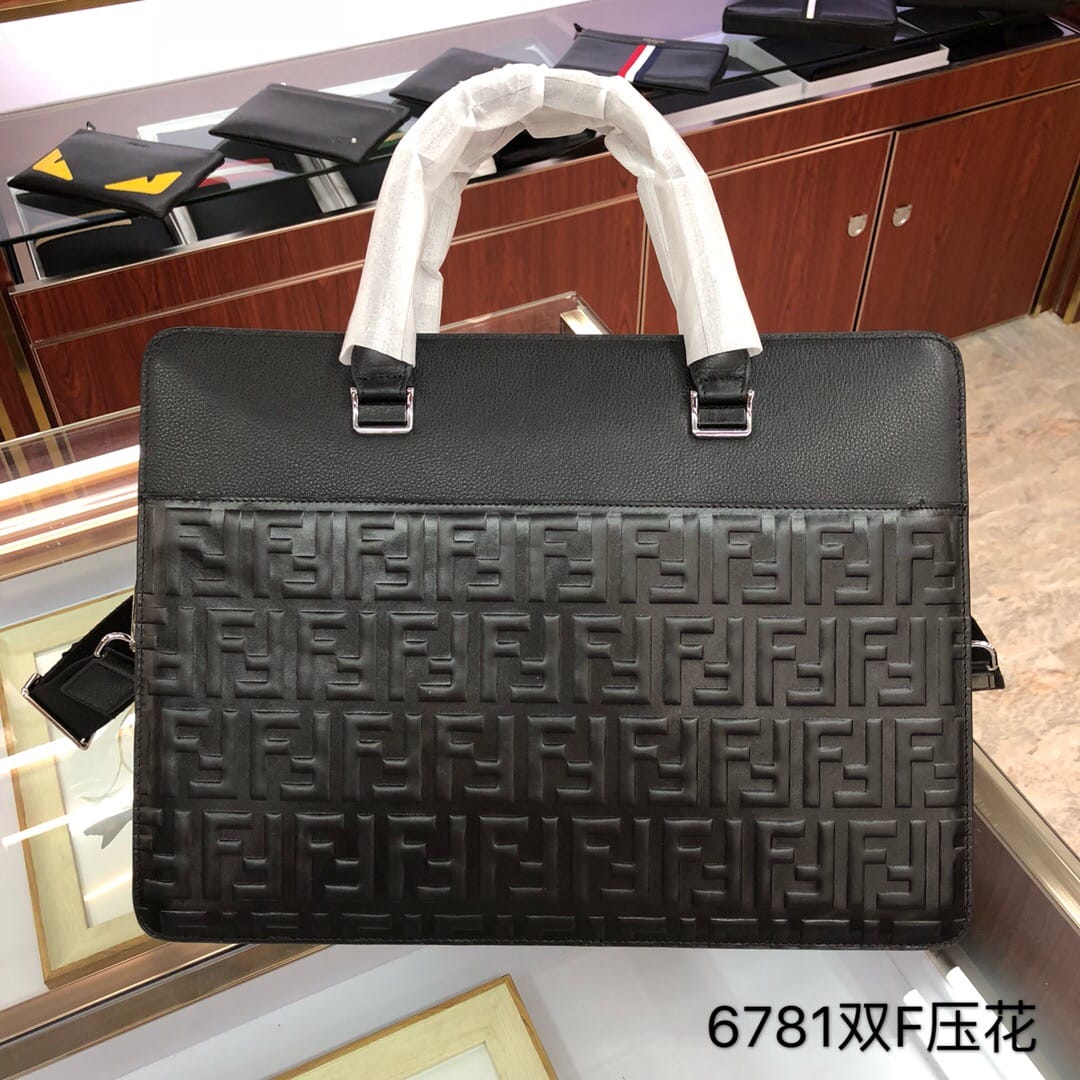 原官网6781薄款拉链开合双F公文包。可调节、可拆卸肩带和双