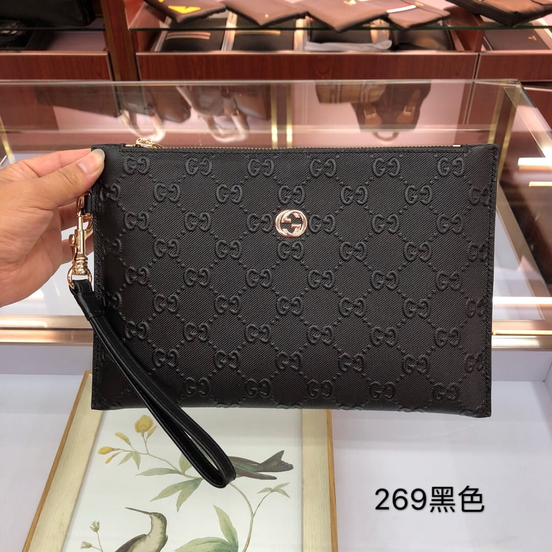 原单网269薄款皮革手拿包,配有可拆卸提手,使用Gucci
