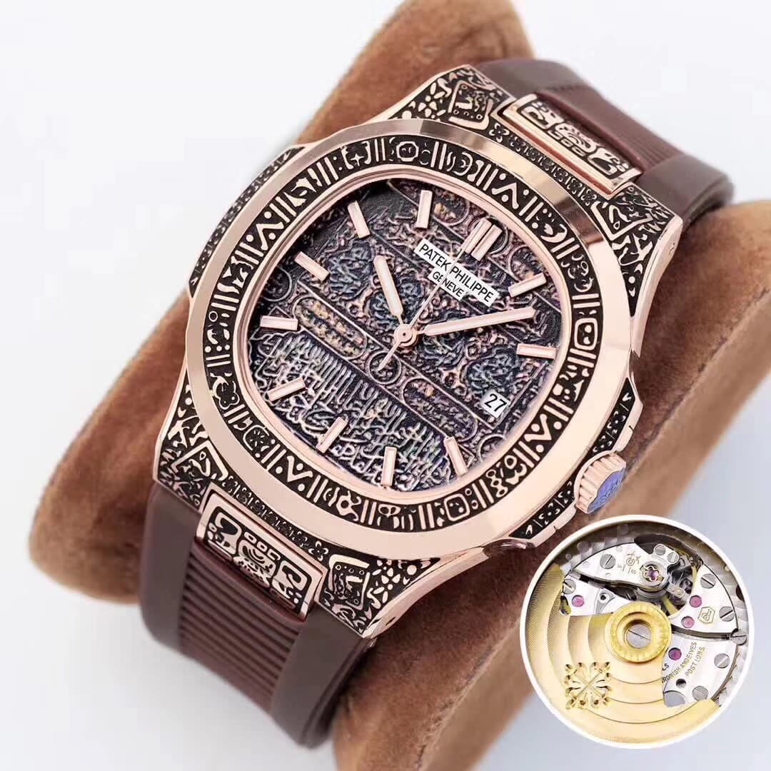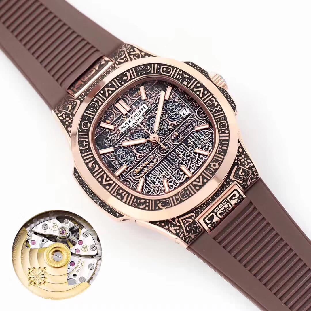 新款更新,百达翡丽雕花复古时尚款腕表 Nautilus系列